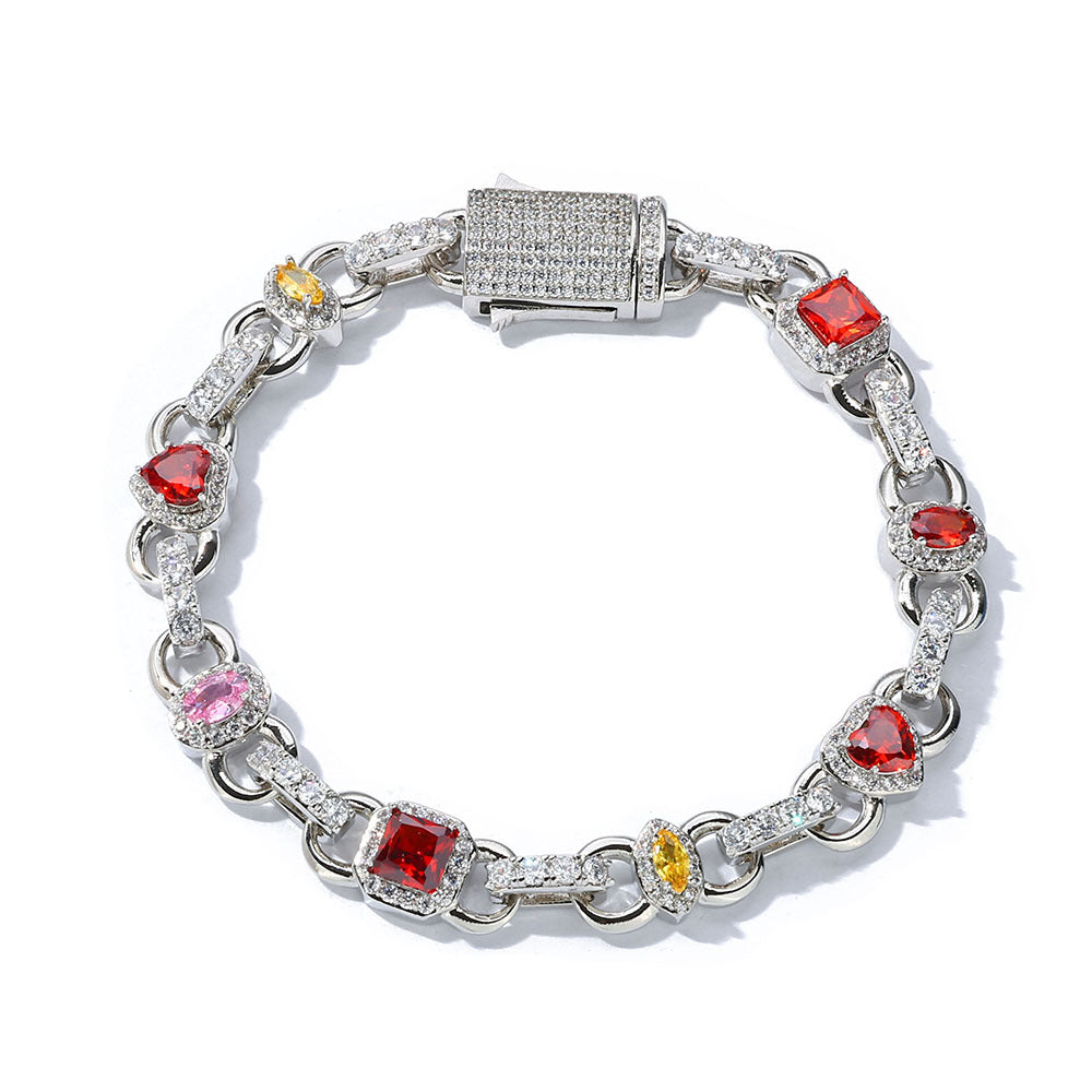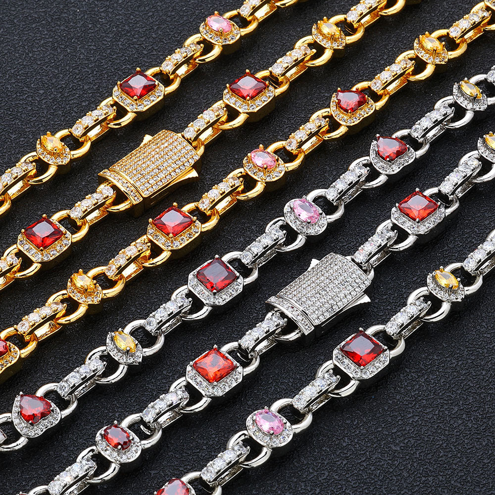 Wholesale 10mm Colorful Gem Cubic Zirconia Hip Hop Bracelet, Chain 7in-9in