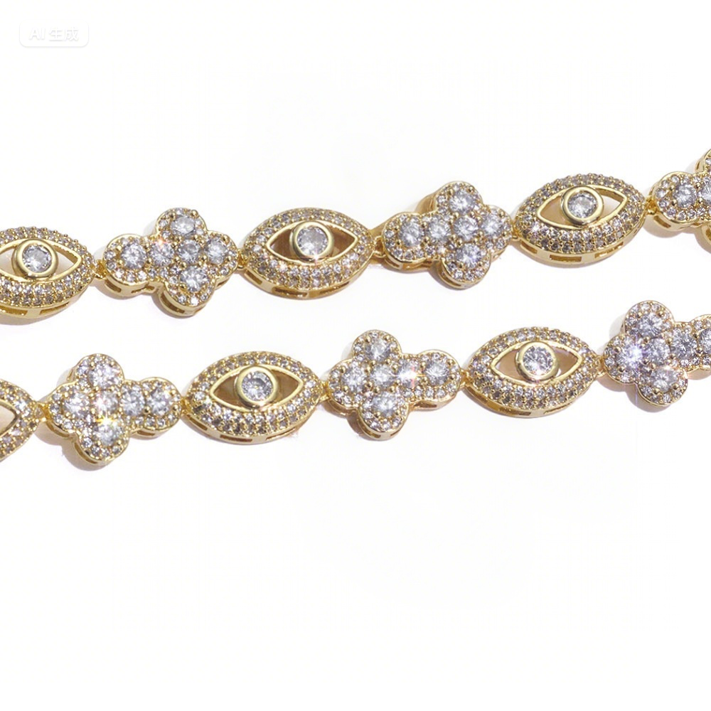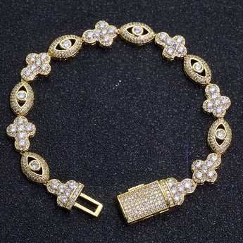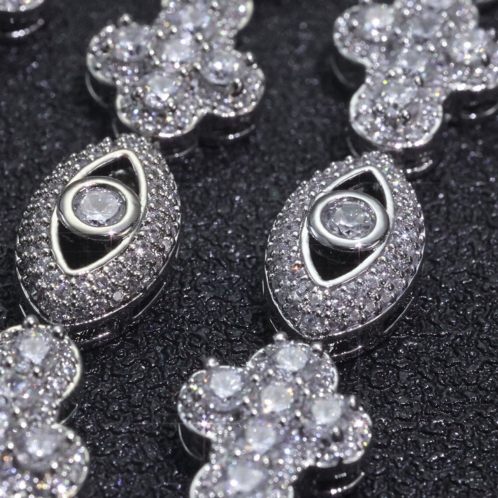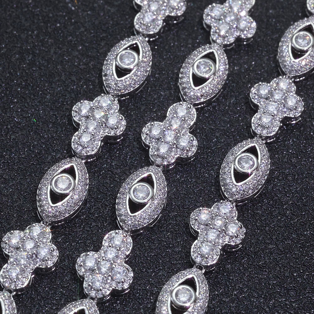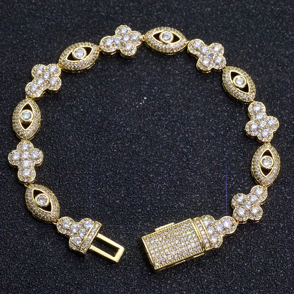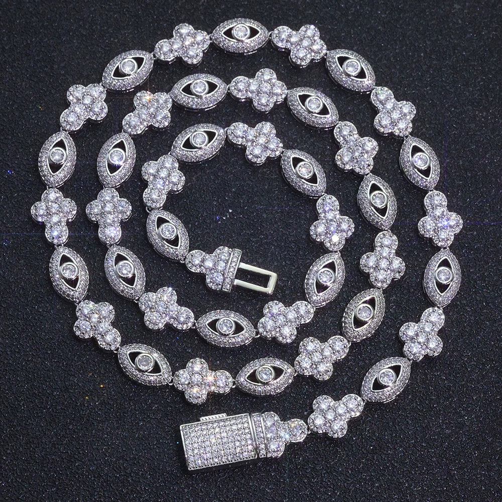 Wholesale 10mm Trendy Eye Cross Cubic Zirconia Hip Hop Bracelet and Necklace, Chain 7in,8in,9in,16in,18in,20in,22in,24in