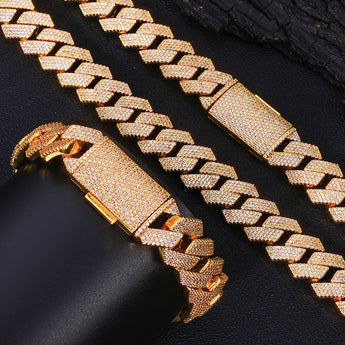 Wholesale 15mm Single Row Cuban Link Cubic Zirconia Jewelry Set HipHop Cuban Bracelet and Necklace, Chain 7in-24in