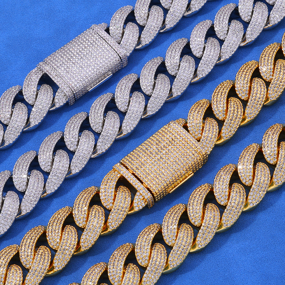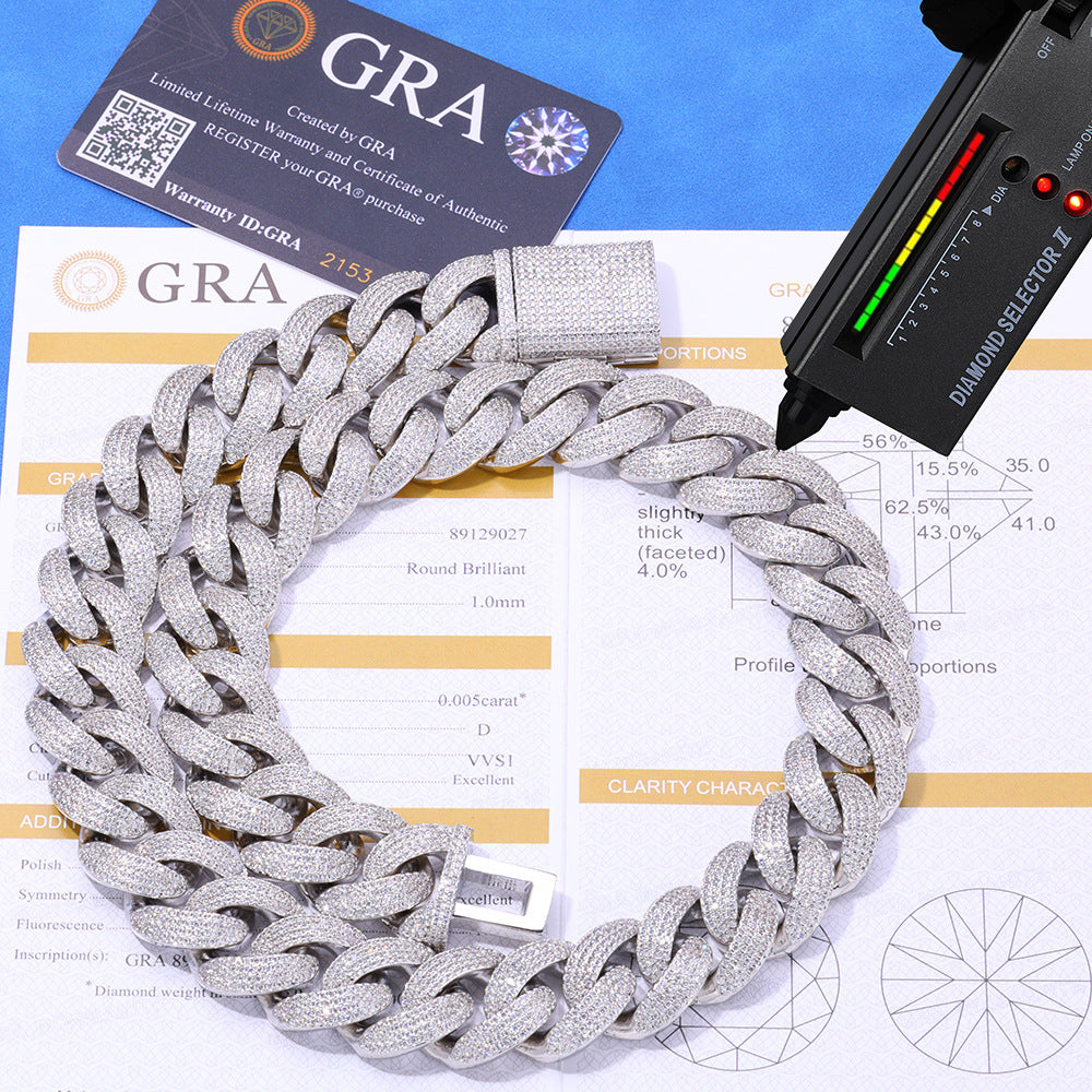 Wholesale 20mm Moissanite D/VVS1 Round-Cut Hip Hop 925 Silver Cuban Chain,Waterproof GRA Certified | Chain Length 16in,18in,20in,24in