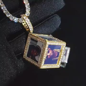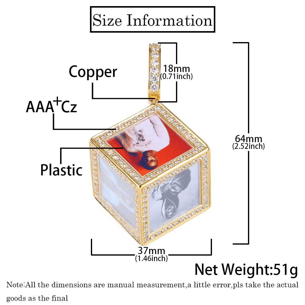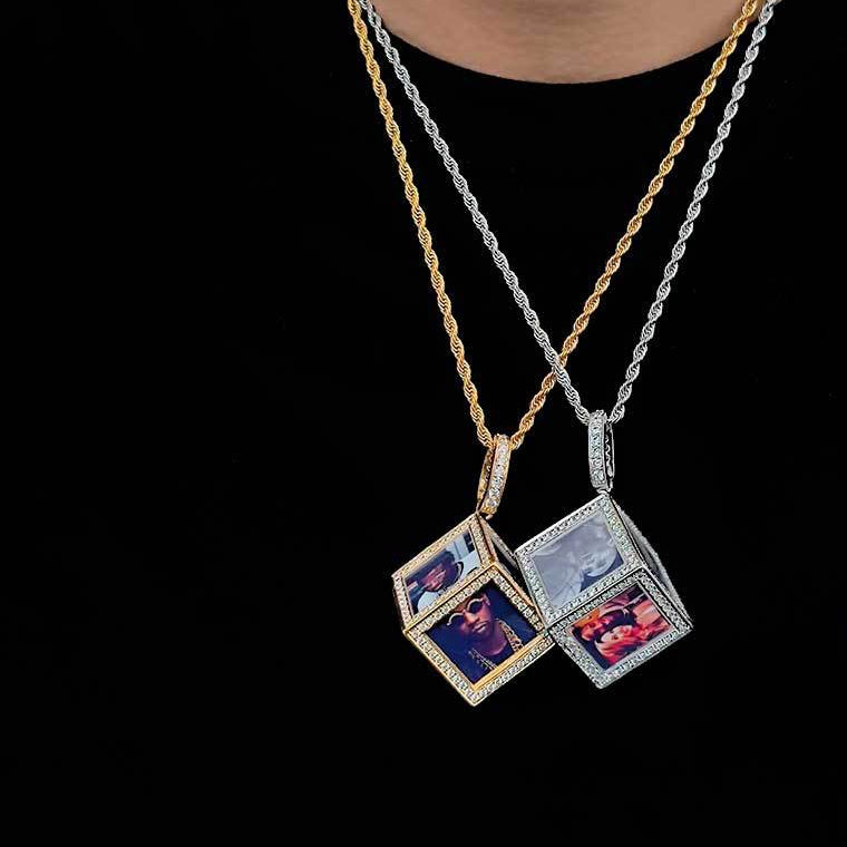 Wholesale 3D Photo Cube Pendant Cubic Zirconia Hip Hop Twist Necklace,Chain 24in