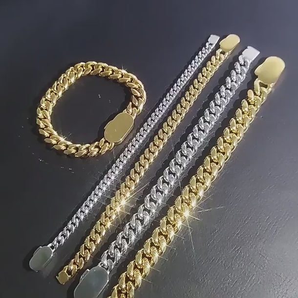 Available in two timeless finishes — gold and silver — this bracelet pairs seamlessly with both casual and dressed-up fits. The 6mm–12mm width options allow you to choose between a subtle, minimal profile or a bold, standout look. Wear it solo for a refined, effortless touch, or layer it with watches, cuffs, or other chains to build a personalized streetwear stack.