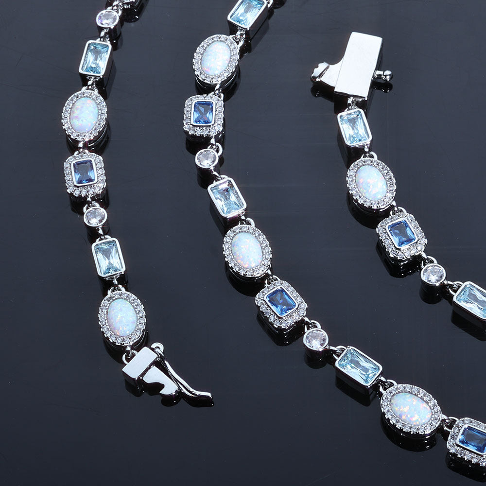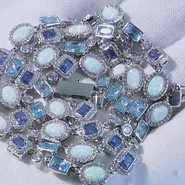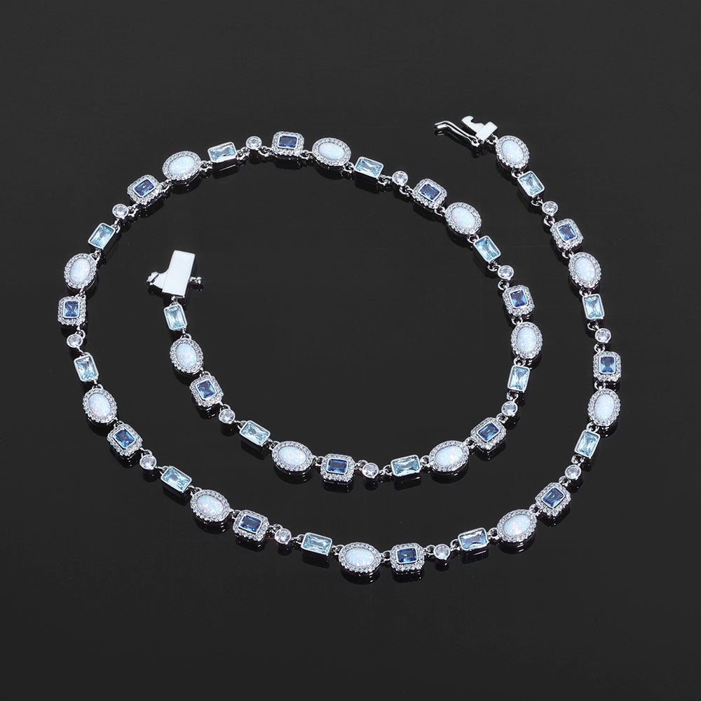 Wholesale 6mm Colorful Gem Opal Cubic Zirconia Hip Hop Necklace and Bracelets,7in-24in