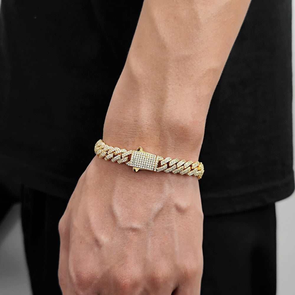 Jewelry wholesale Wholesale 8mm Rhombus Cuban Link Cubic Zirconia Hip Hop  Bracelet – Spring Clasp, Chain 7in,8in,9in Gold / 8mm / 9in(22.86cm)