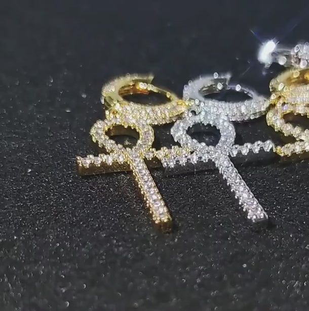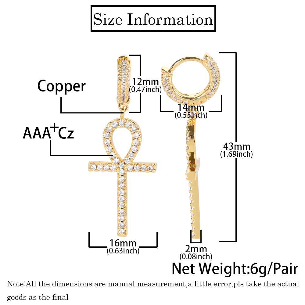 Wholesale Ankh Key Cross Cubic Zirconia Hip Hop Earrings