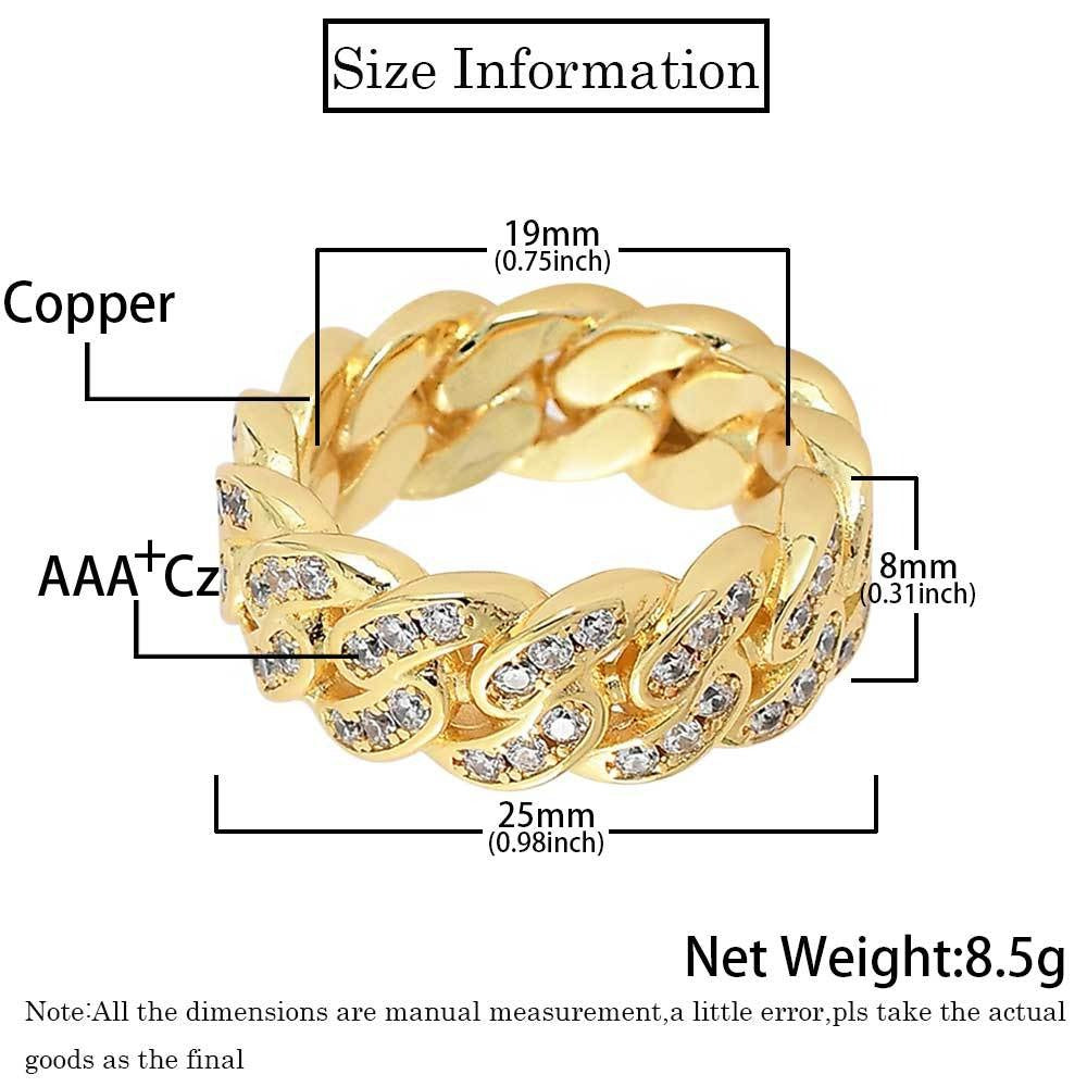 Wholesale 8mm Single Row Cubic Zirconia Cuban Link Hip Hop Band Ring