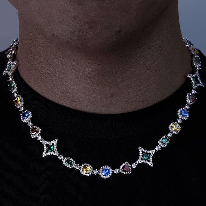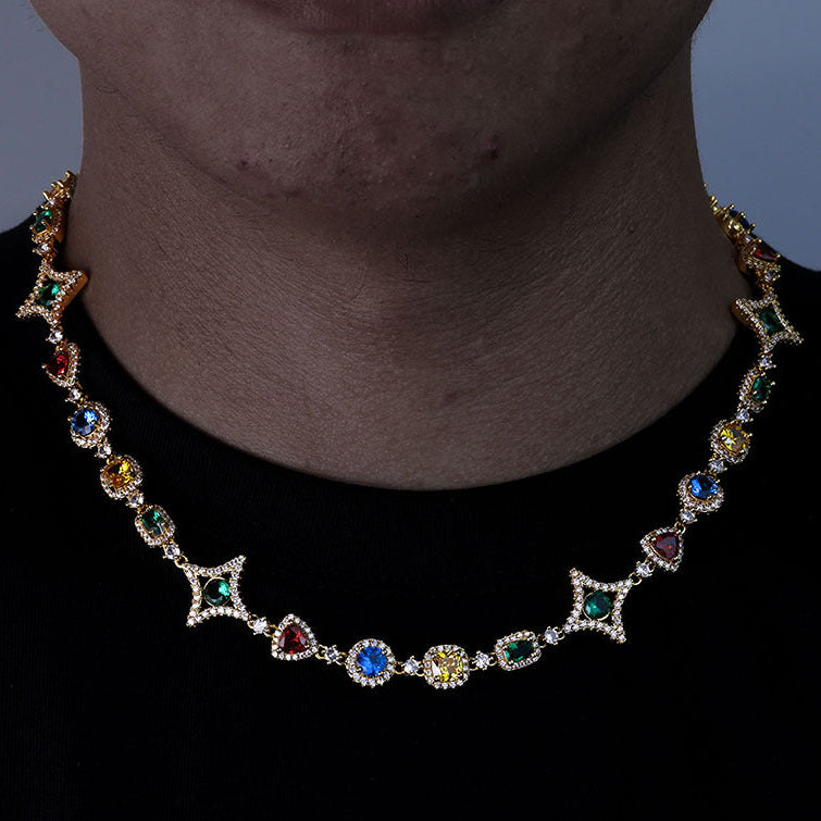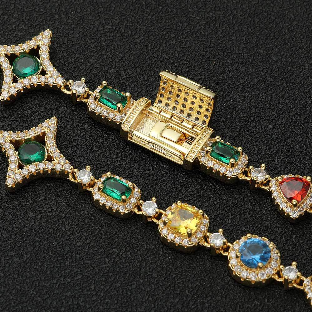 Wholesale Colorful Cubic Zirconia Hip Hop Luxury Jewelry Set Link Chain Bracelet and Necklace, Chain 7in-24in