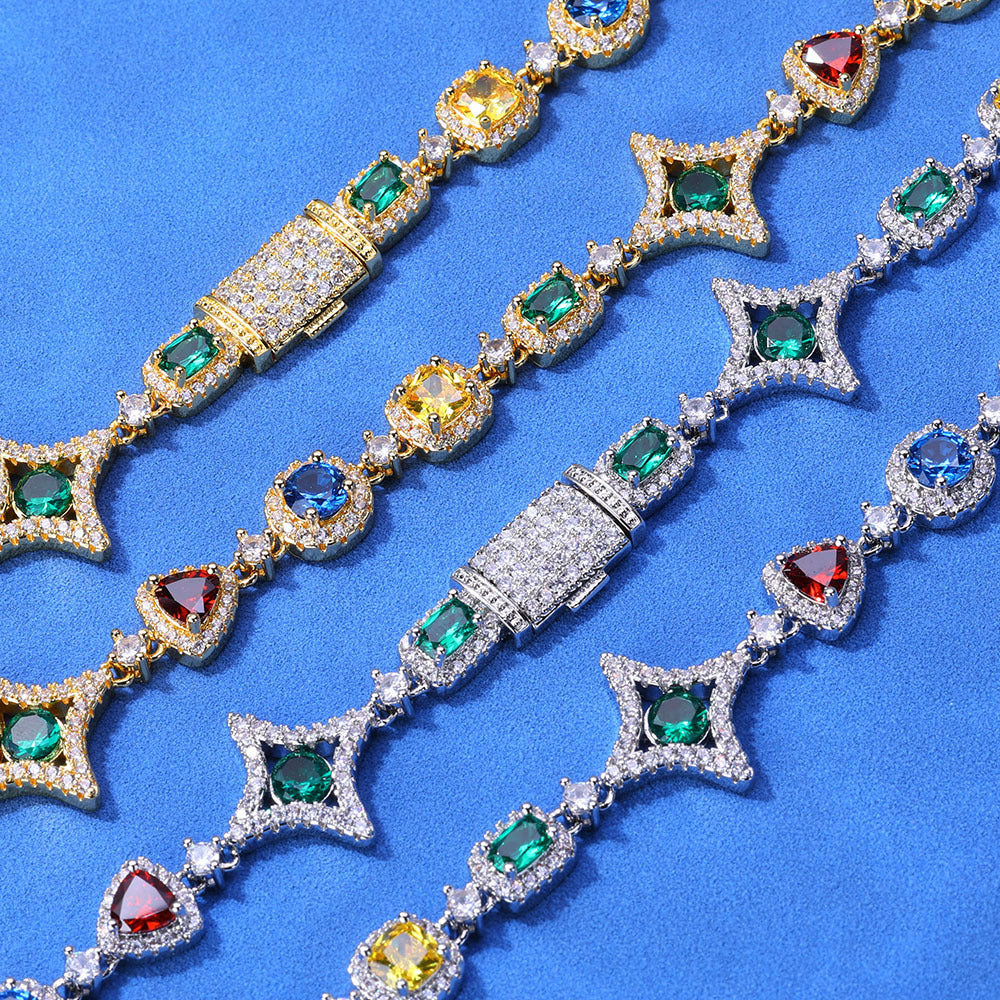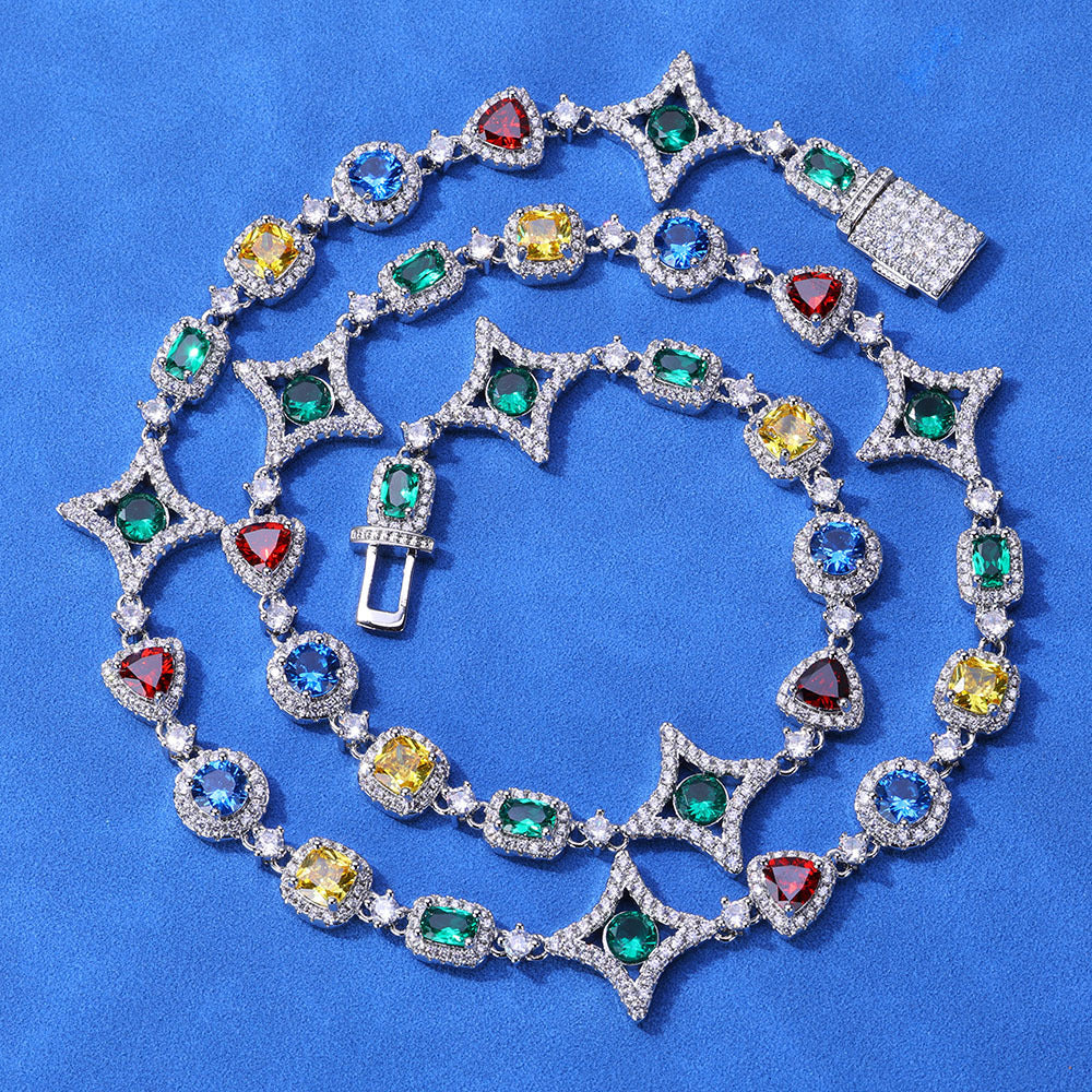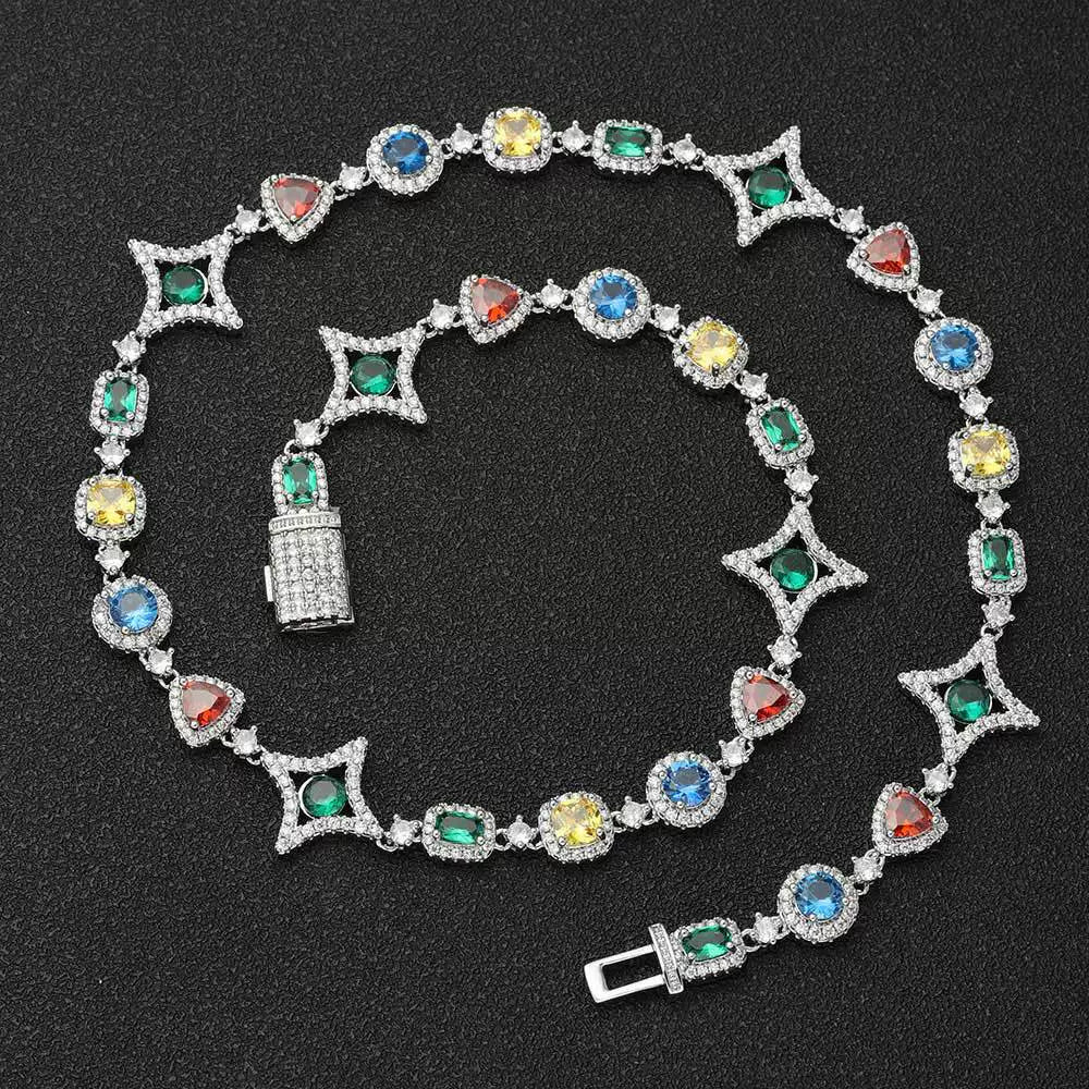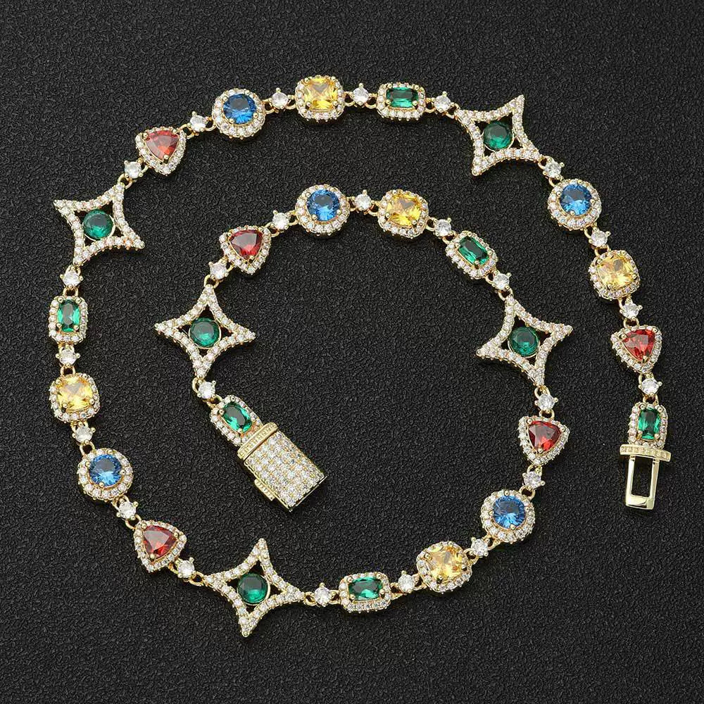 Wholesale Colorful Cubic Zirconia Hip Hop Luxury Link Chain Necklace, Chain 16in,18in,20in,22in,24in