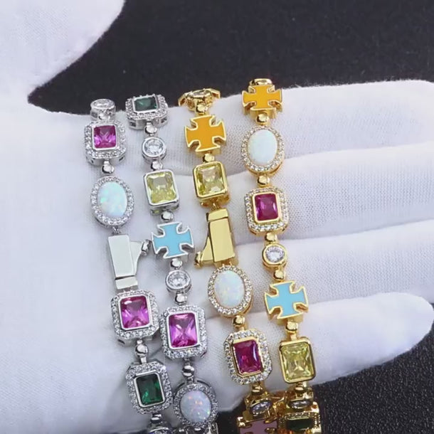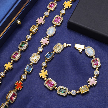 Wholesale Colorful Cubic Zirconia Jewelry Set Trendy Bracelet and Necklace, Chain 7in,8in,9in,16in,18in,20in,22in,24in