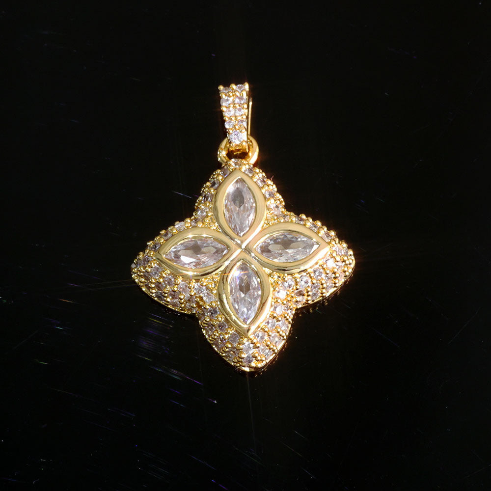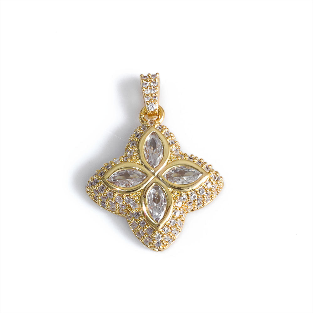 Wholesale Colorful Four Leaf Clover Cubic Zirconia Hip Hop Pendant Necklace, Chain 18in*5mm Gold+White Zircon (Style1) / 5mm*18in