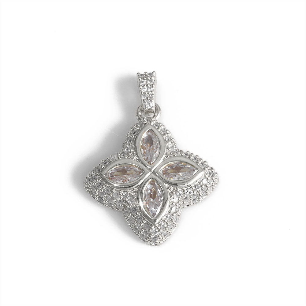 Wholesale Colorful Four Leaf Clover Cubic Zirconia Hip Hop Pendant Necklace, Chain 18in*5mm Silver+White Zircon(Style1) / 5mm*18in