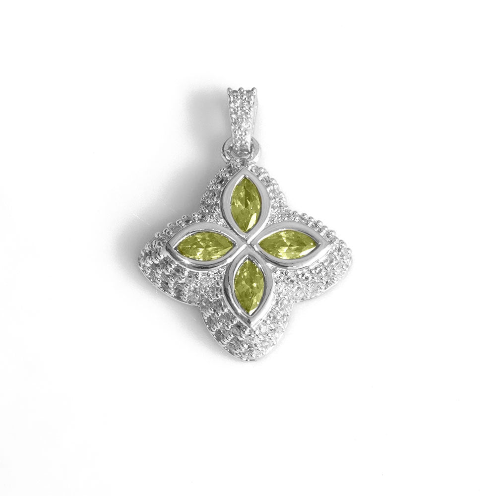 Wholesale Colorful Four Leaf Clover Cubic Zirconia Hip Hop Pendant Necklace, Chain 18in*5mm Silver&Green zircon / 5mm*18in