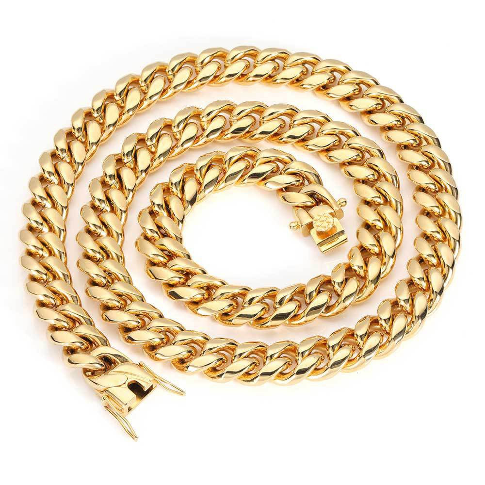 Wholesale Cuban Chain Hip Hop Stainless Steel Chain Necklace - 18K Gold-Plated, Chain 19.69in , 23.62in, Waterproof