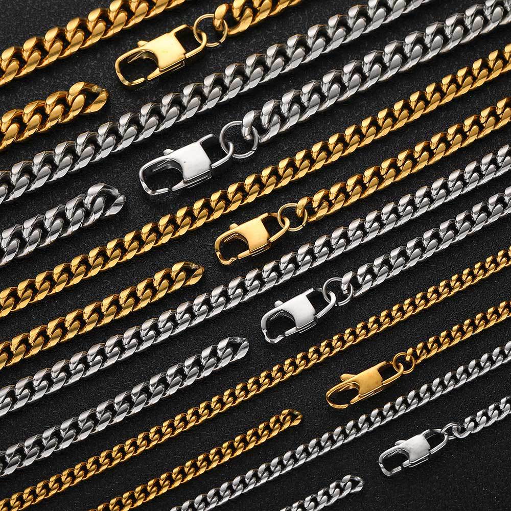 Wholesale Cuban Link Jewelry Set Classic 304 Stainless Steel Bracelet and Necklace, Chain 7in-30in, Waterproof