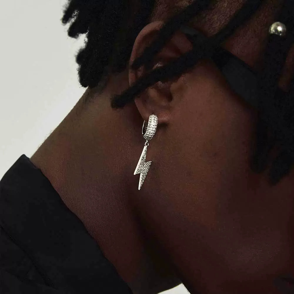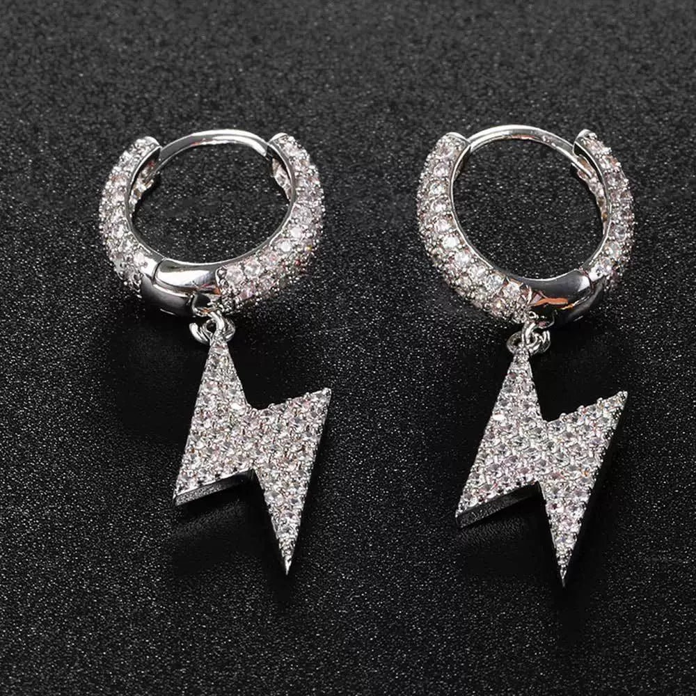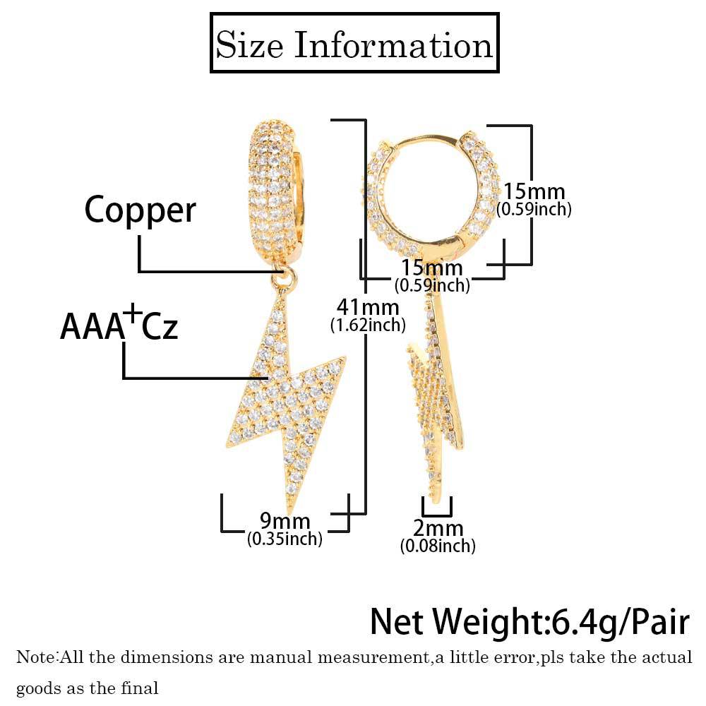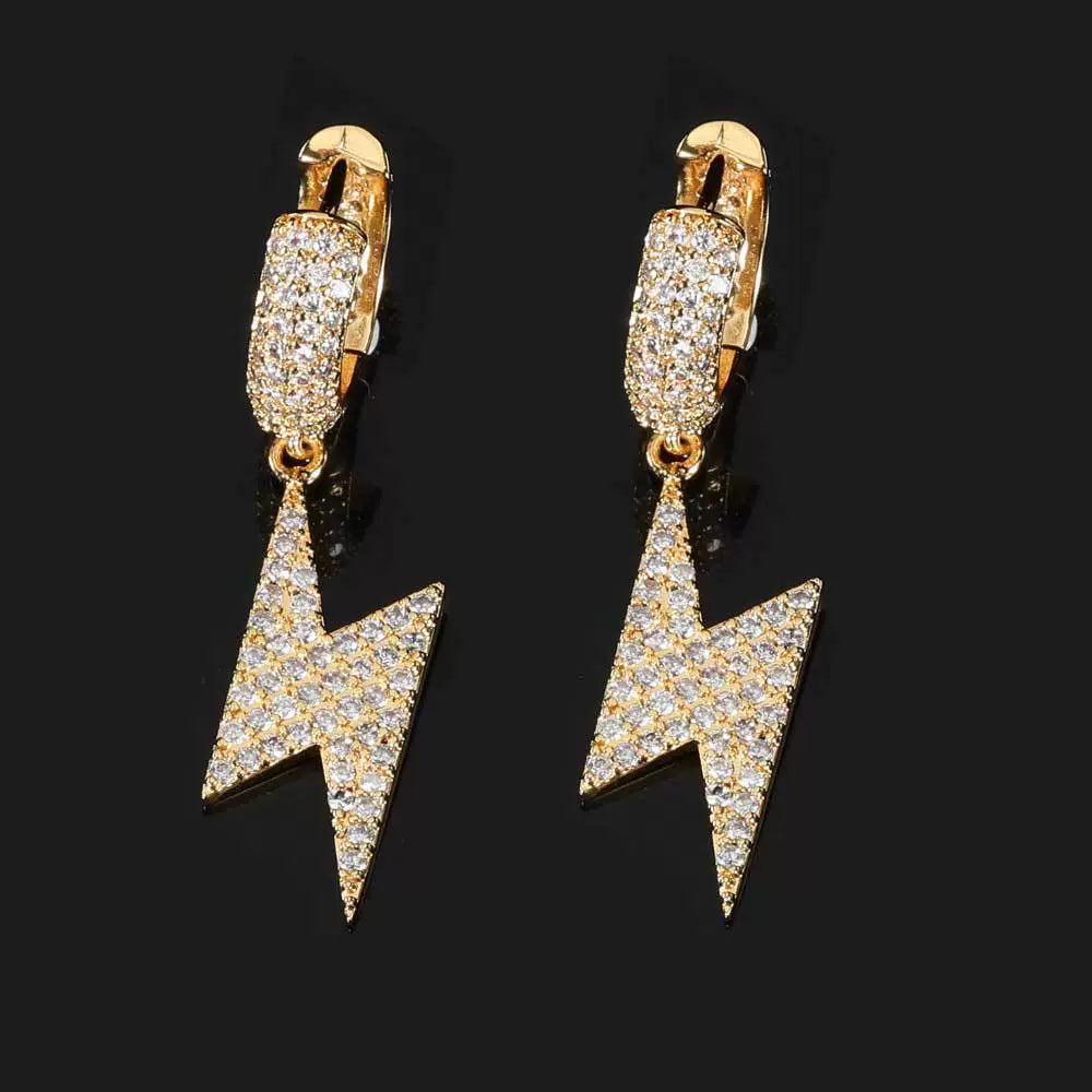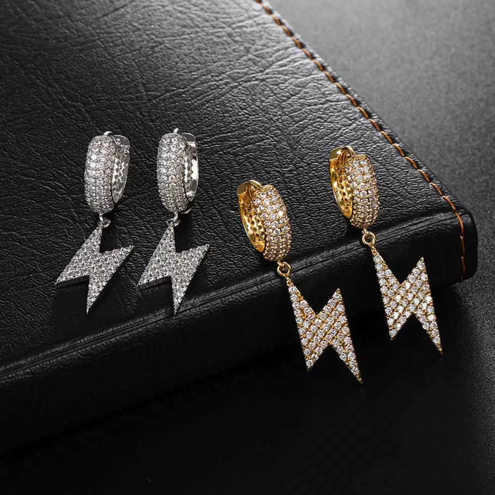 Wholesale Cubic Zirconia Hoop Eearring Lightning Drop Hip Hop Earrings
