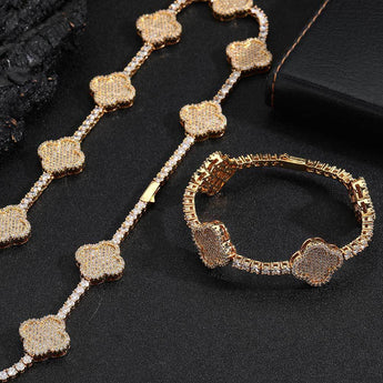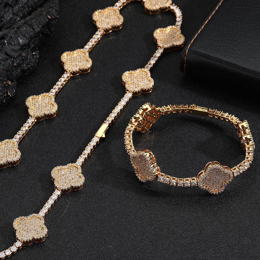 Wholesale Four Leaf Clover Cubic Zirconia Jewelry Set Trendy Tennis Bracelet and Necklace, Chain 7in-24in