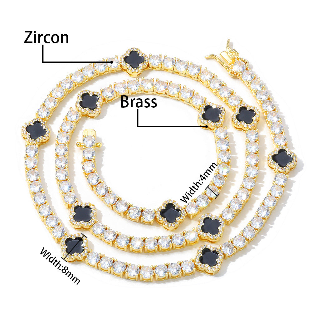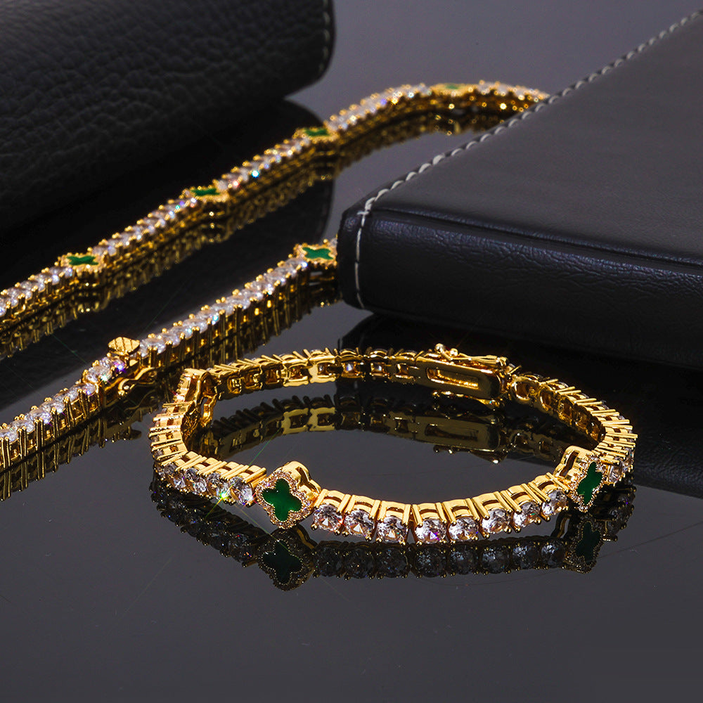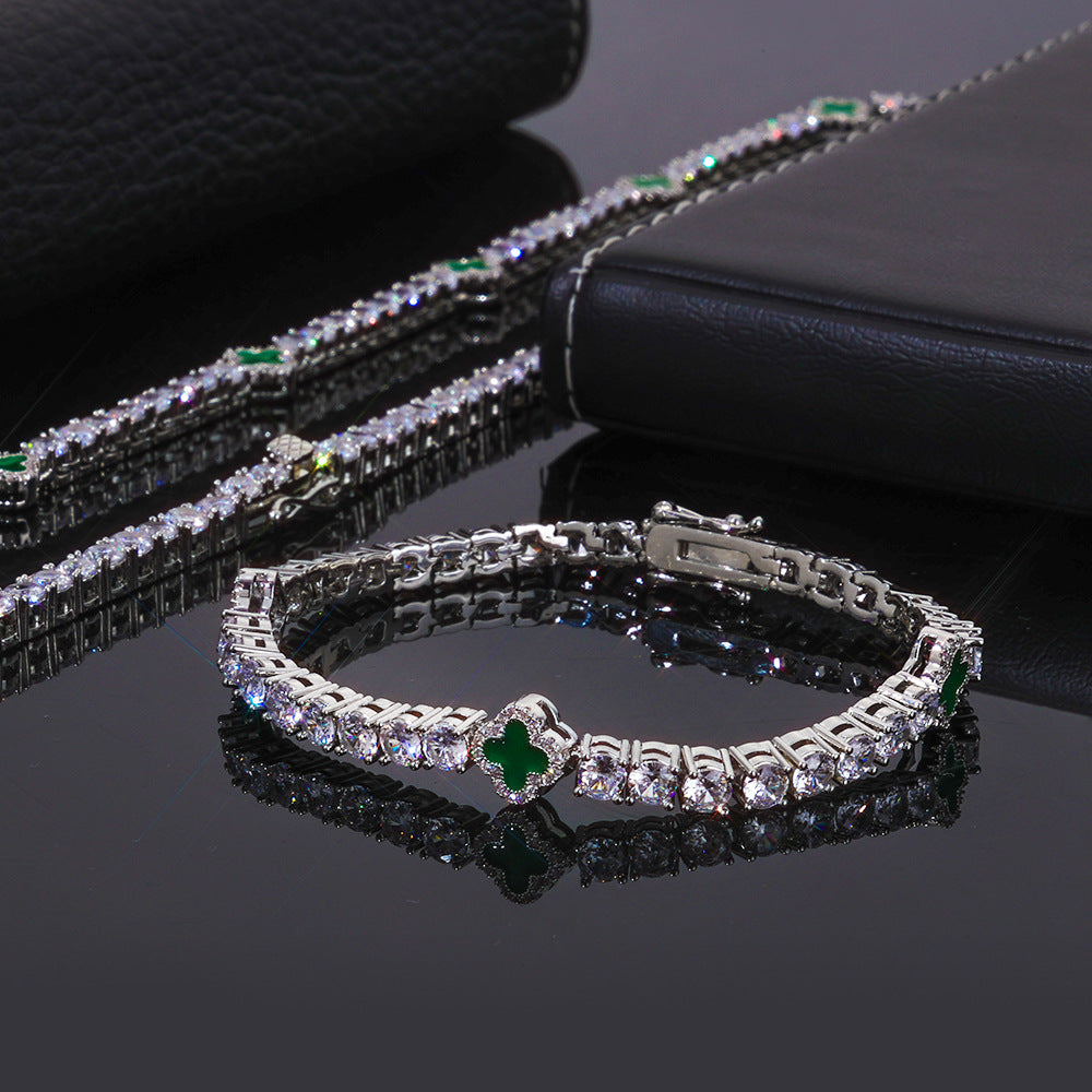 Wholesale Four Leaf Clover Jewelry Set Trendy Tennis Bracelet and Necklace, Chain 7in,8in,9in,16in,18in,20in,22in,24in