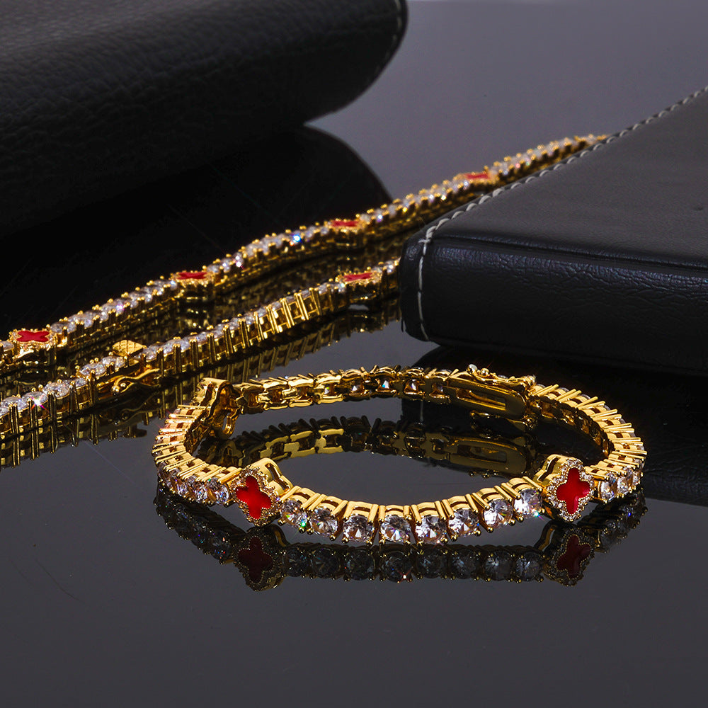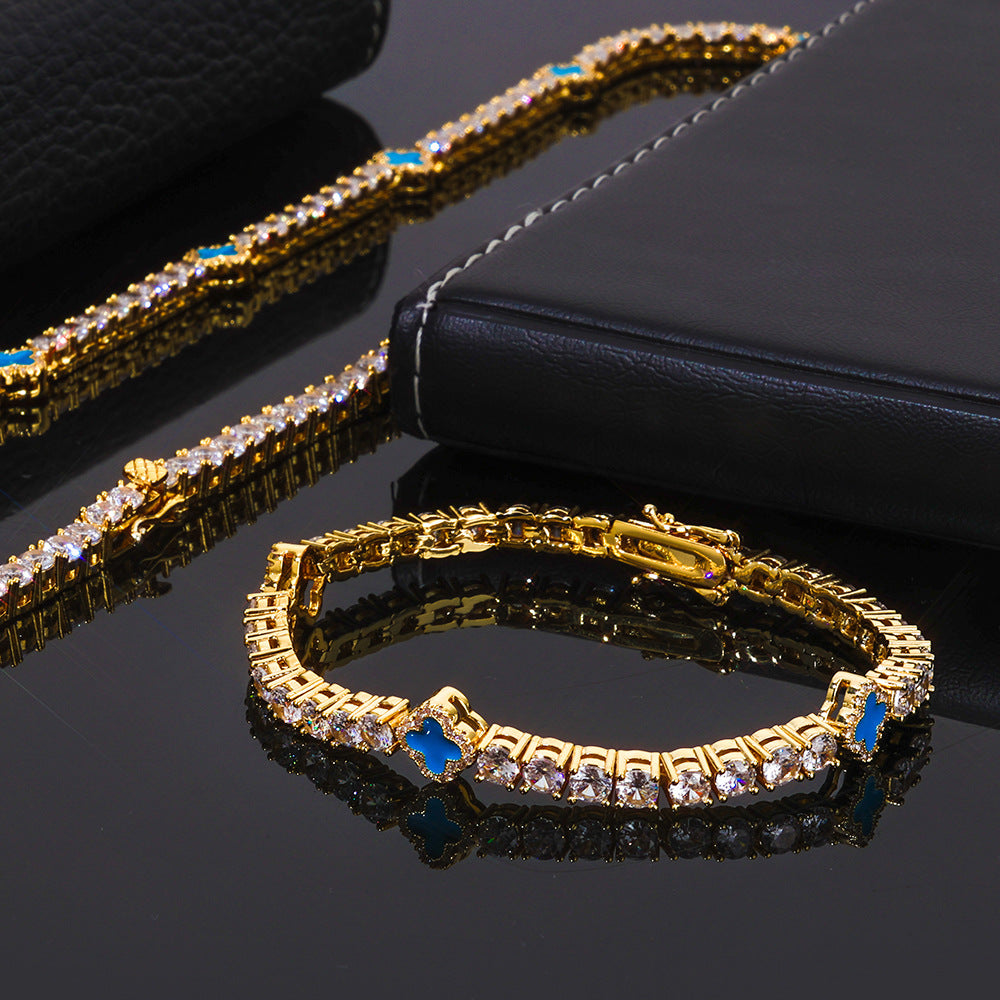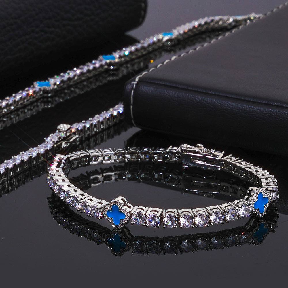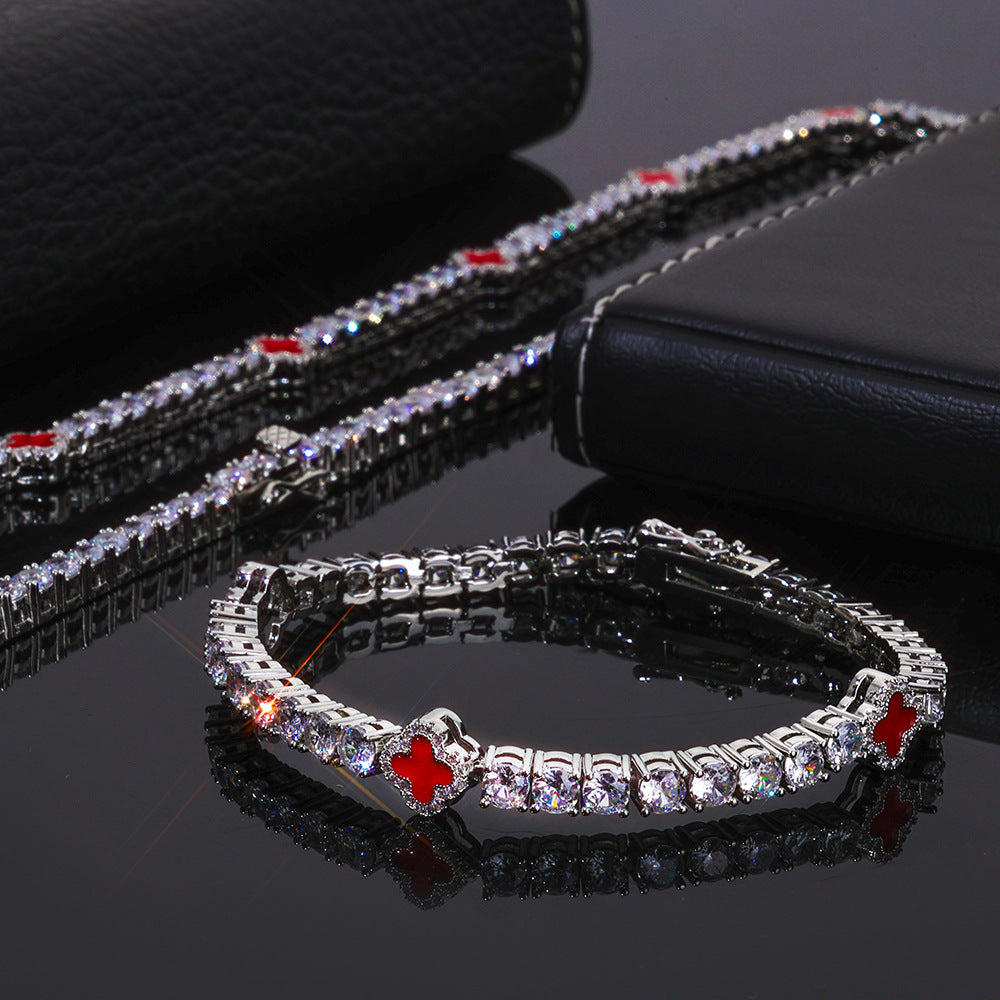 Wholesale Four Leaf Clover Jewelry Set Trendy Tennis Bracelet and Necklace, Chain 7in,8in,9in,16in,18in,20in,22in,24in