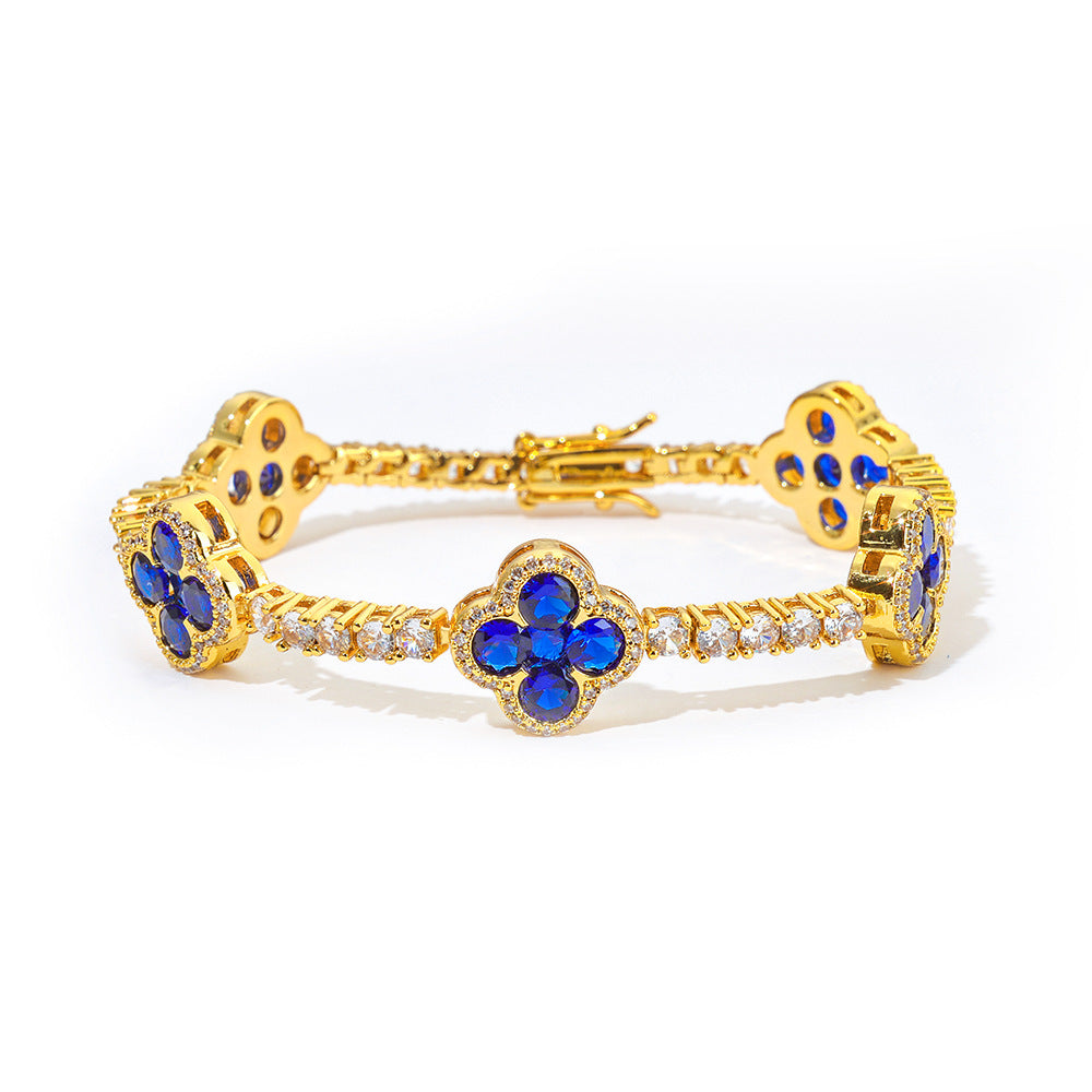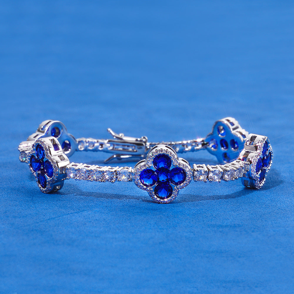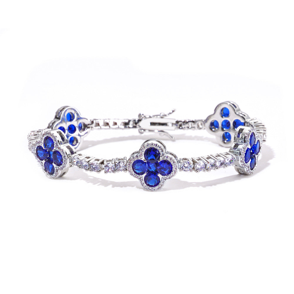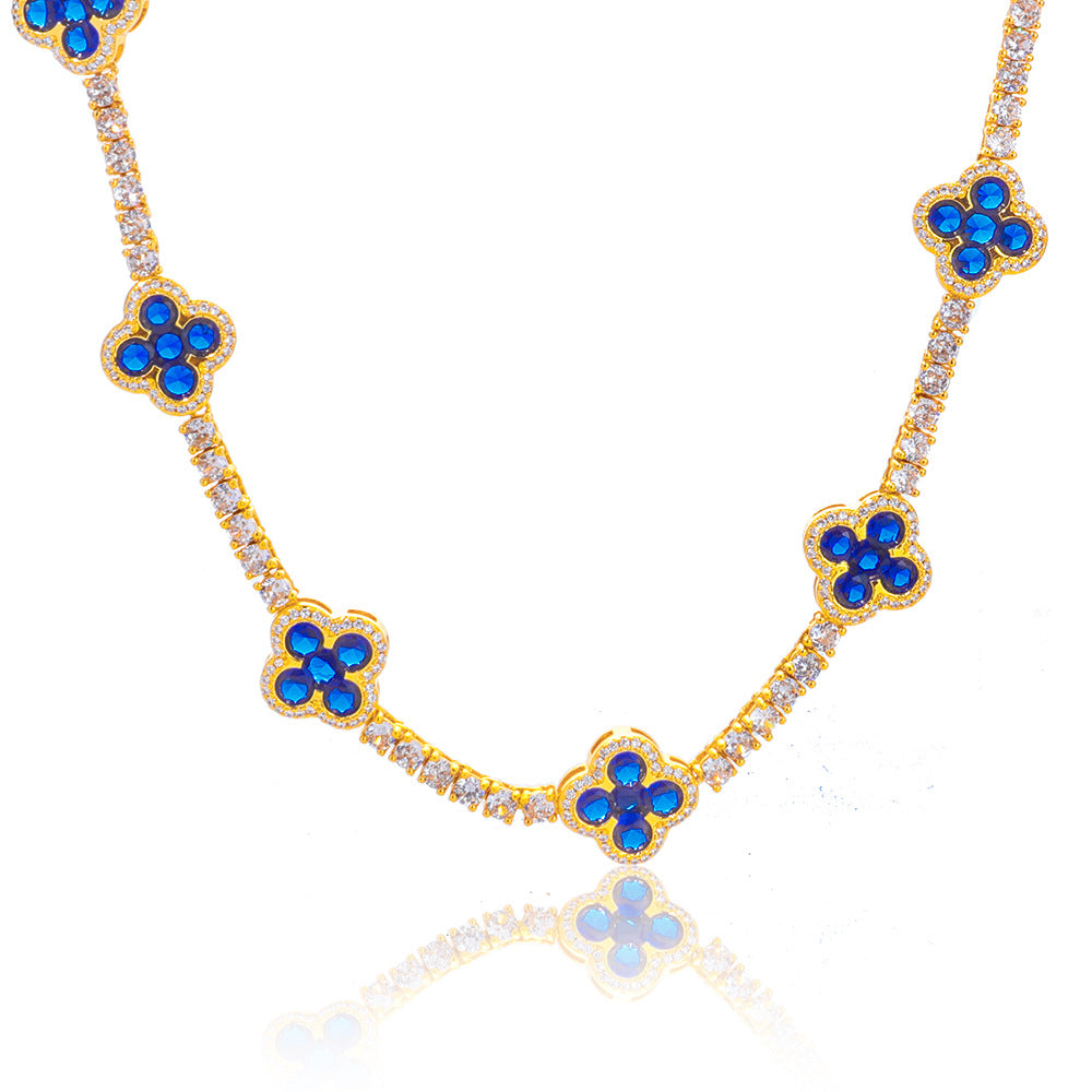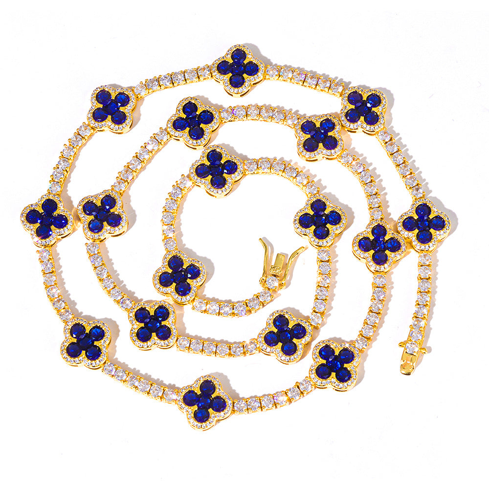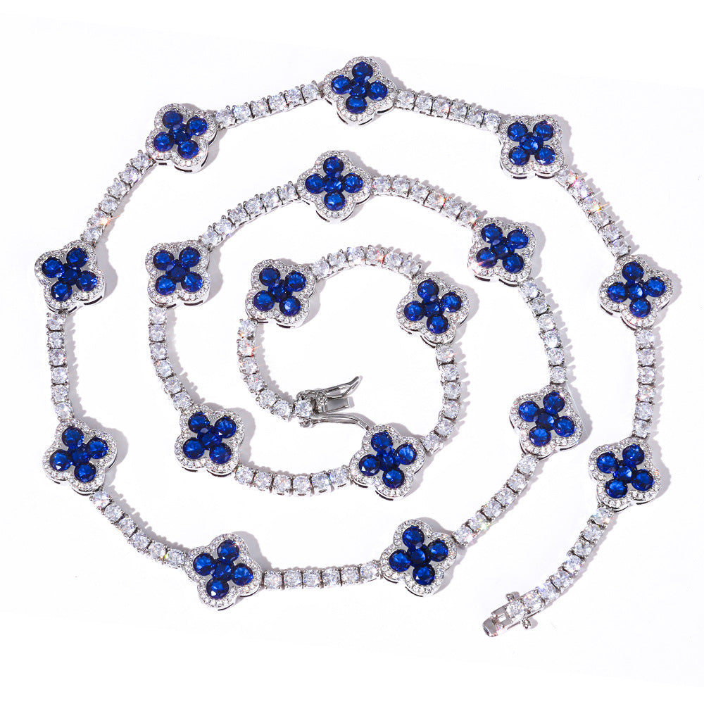 Wholesale Four-Leaf Clover Tennis Chain Cubic Zirconia Jewelry Set Hip Hop Bracelet and Necklace, Chain 7in-24in