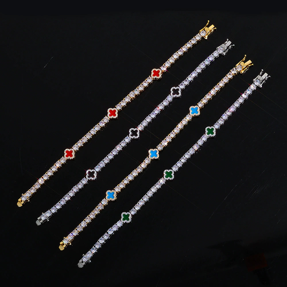 Wholesale Four Leaf Clover Trendy Tennis Bracelet, Chain 7in,8in,9in