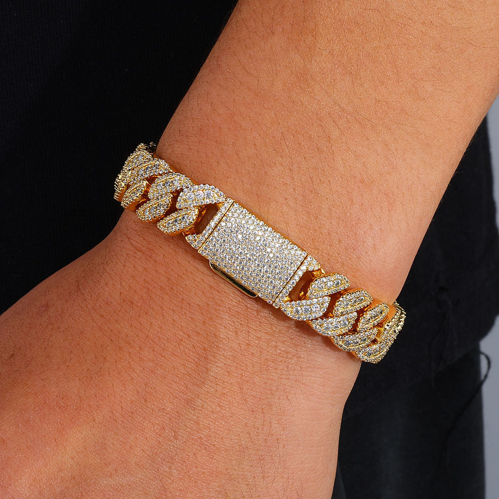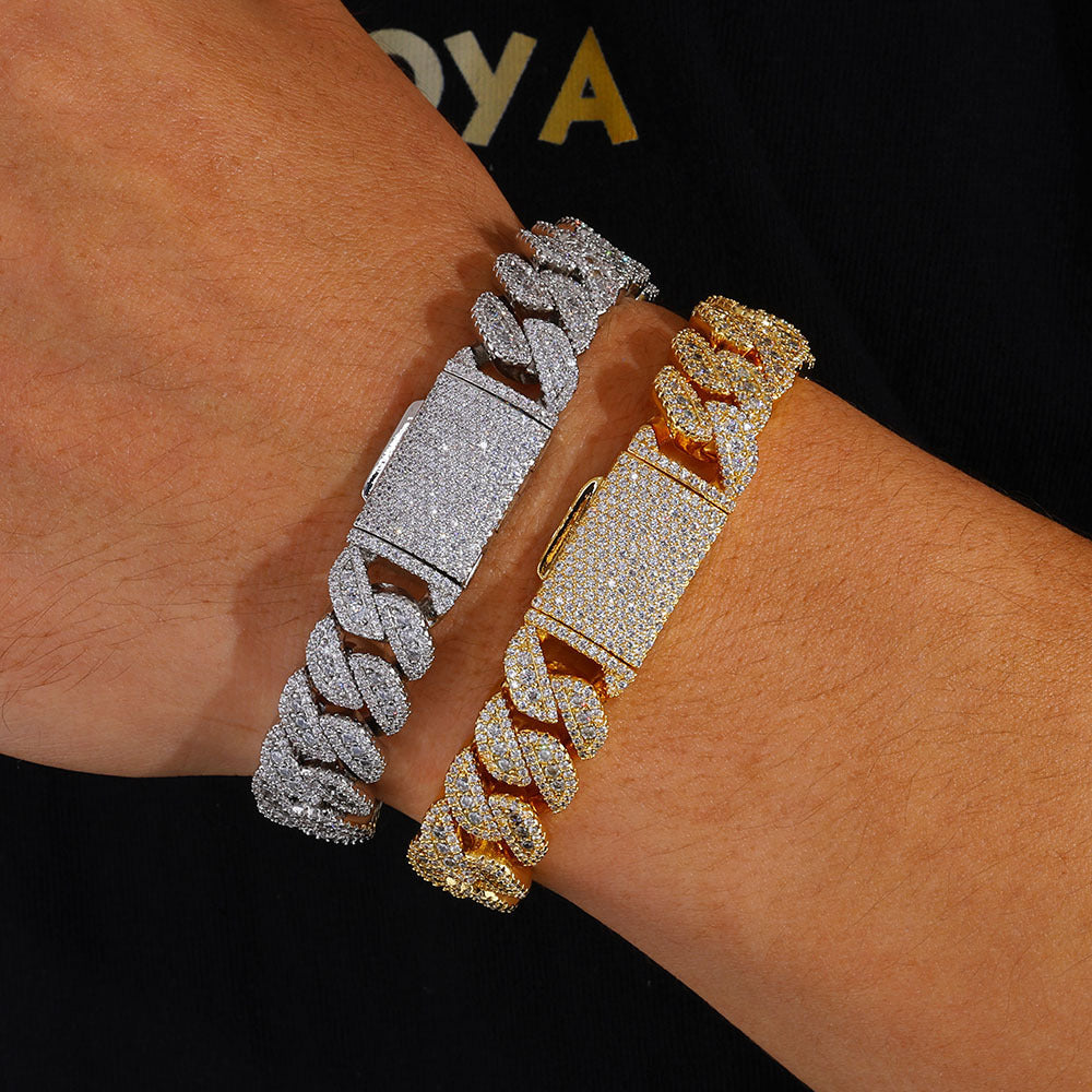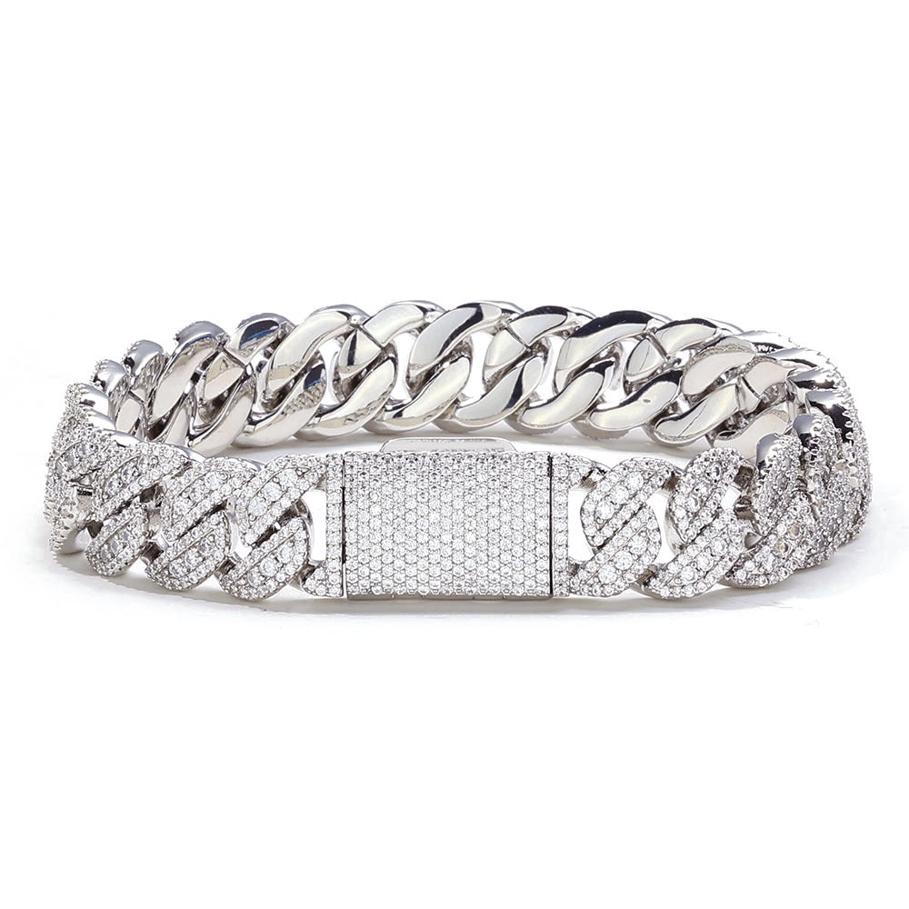 Wholesale Full Iced Out Cubic Zirconia Diamond Cuban Link Hip Hop Bracelet, Chain 7in-9in