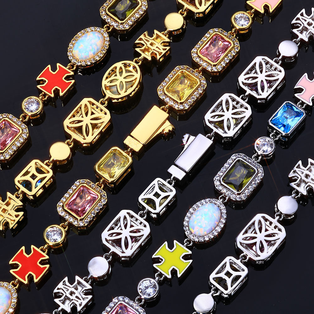 Perfect for wholesalers and retailers seeking fashionable jewelry with lasting appeal, this opal and zircon chain delivers premium craftsmanship, modern design, and a luxurious shine — a standout choice in the global hip hop jewelry market.