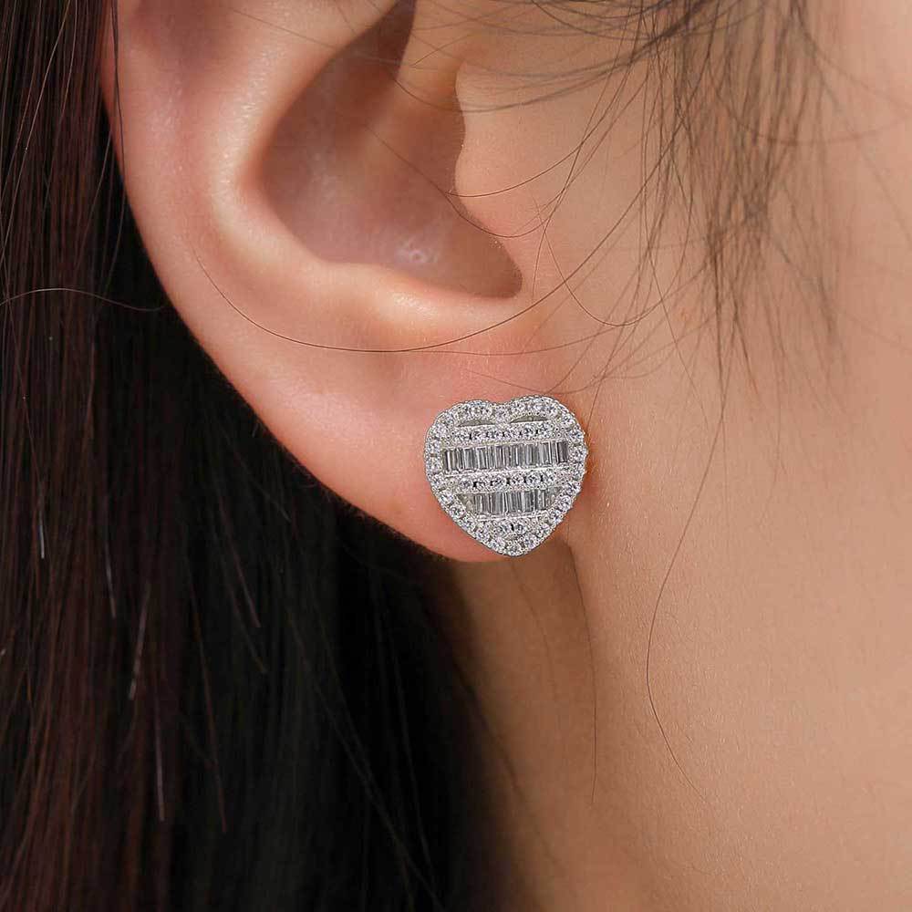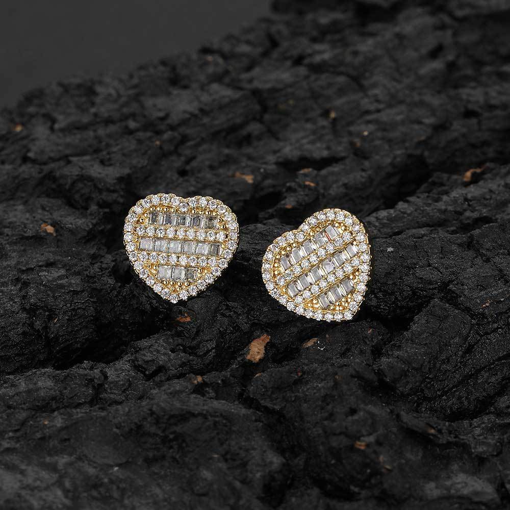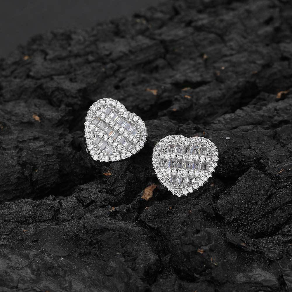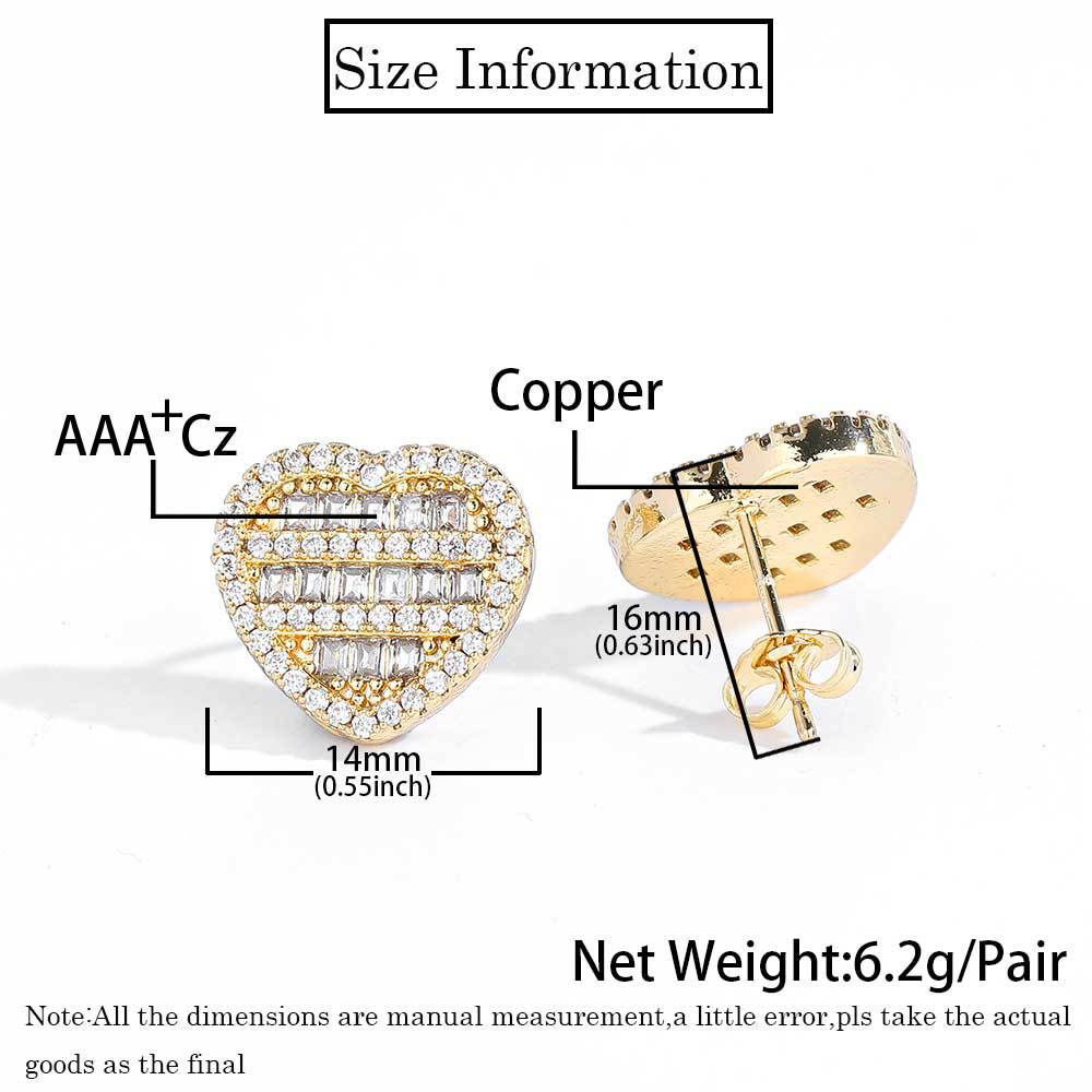 Wholesale Heart Square Mixed Cubic Zirconia Hip Hop Stud Earrings