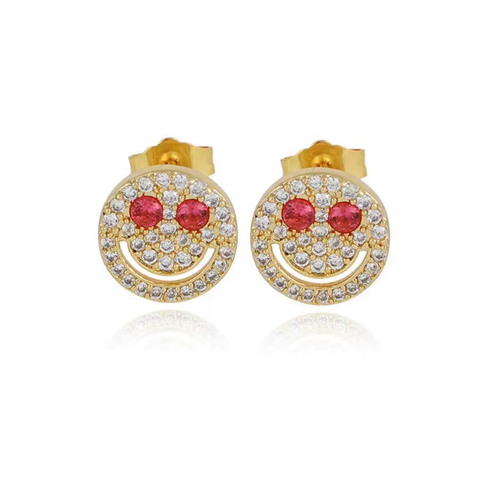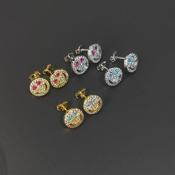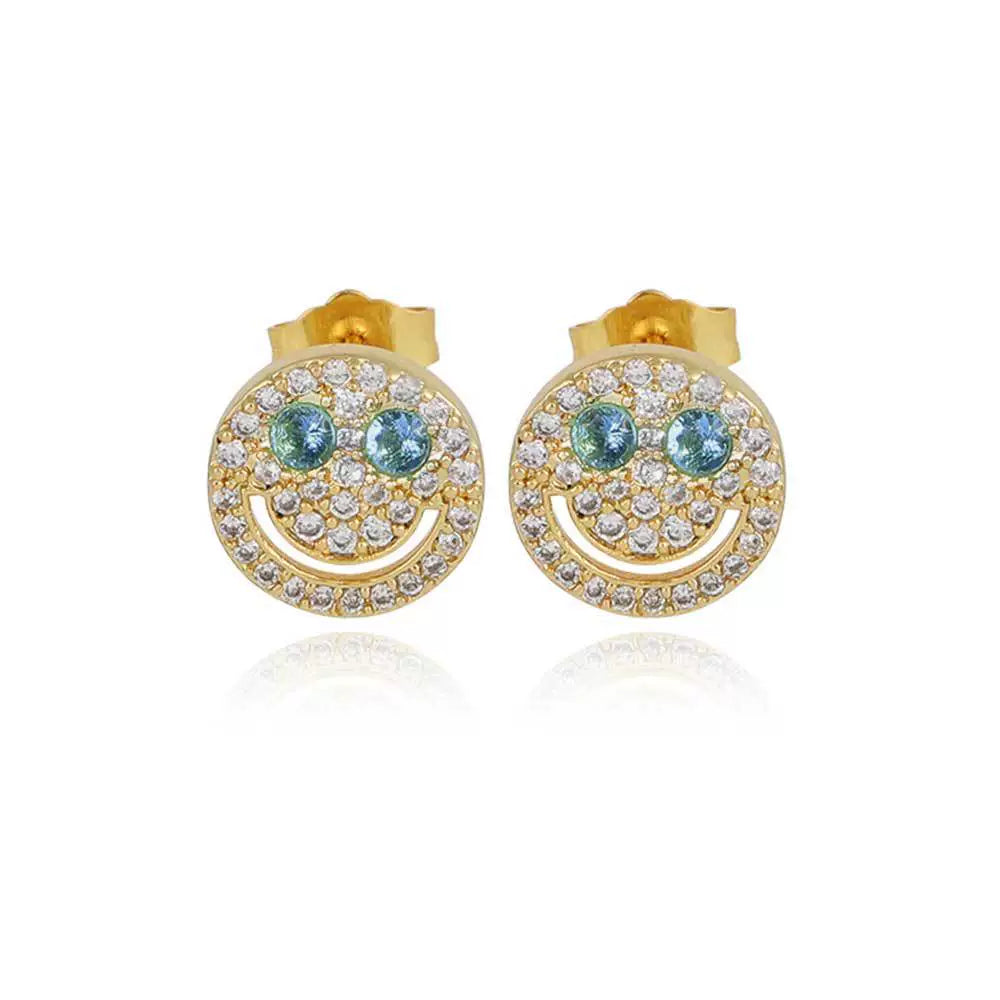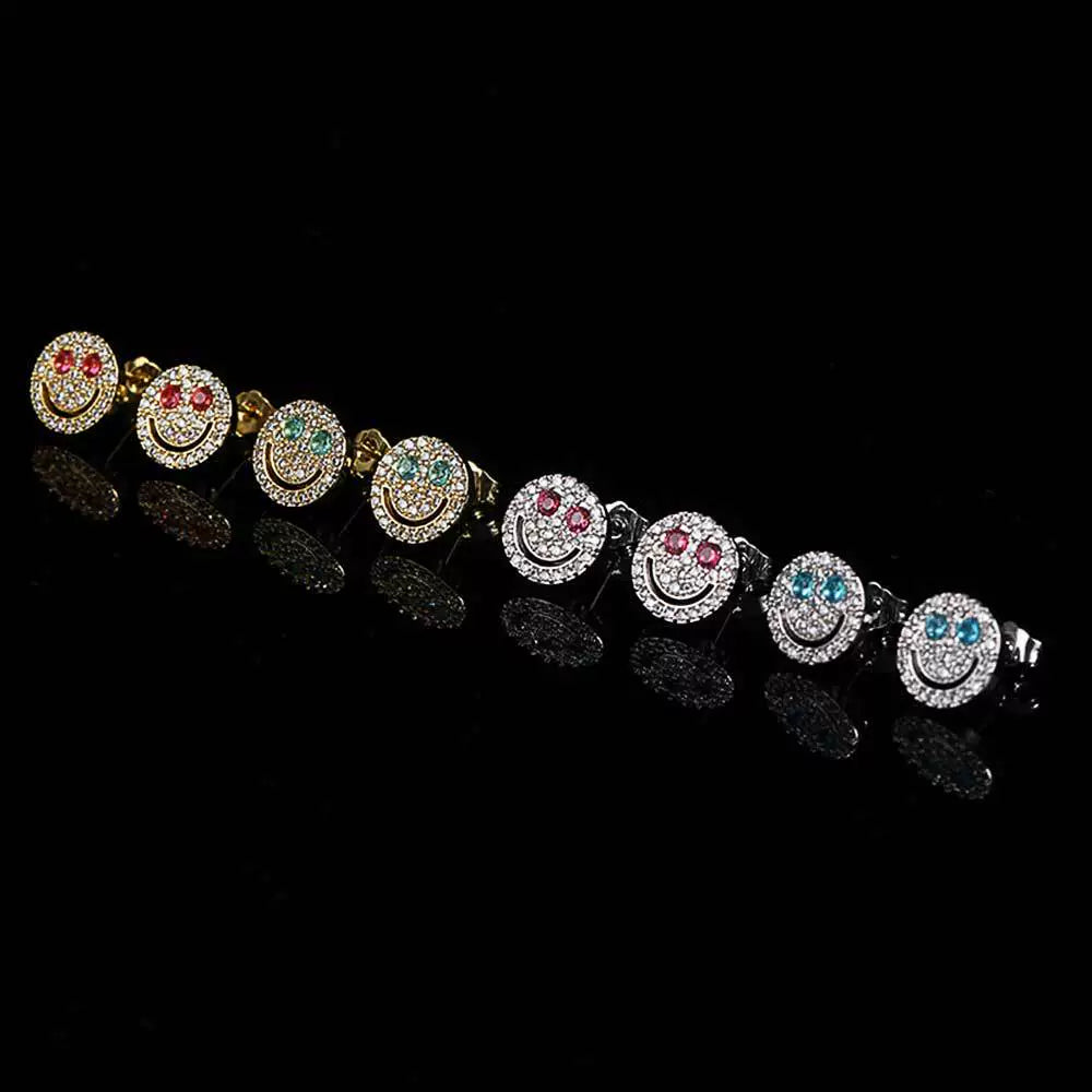 Wholesale Hip Hop Iced Out Smiley Face Stud Earrings, 925 Sterling Silver Post