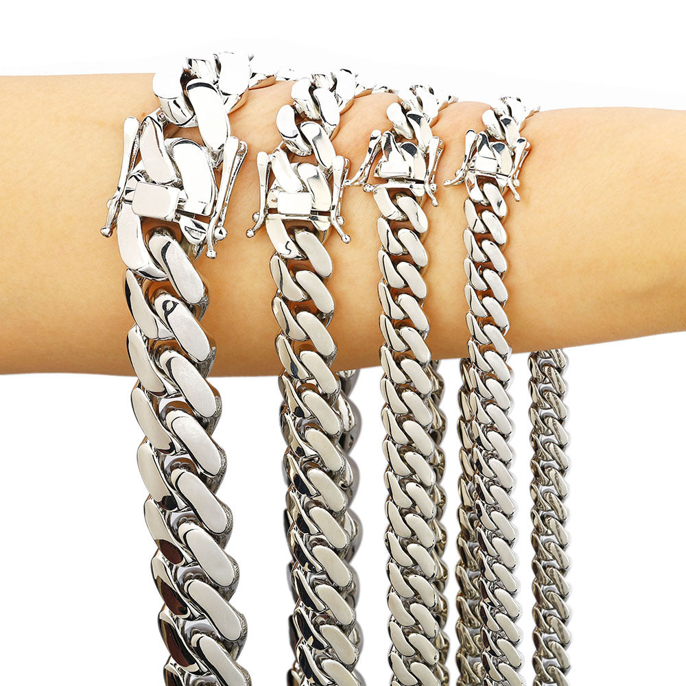 Wholesale hip-hop necklace accessories - polished Cuban chain,7in-26in