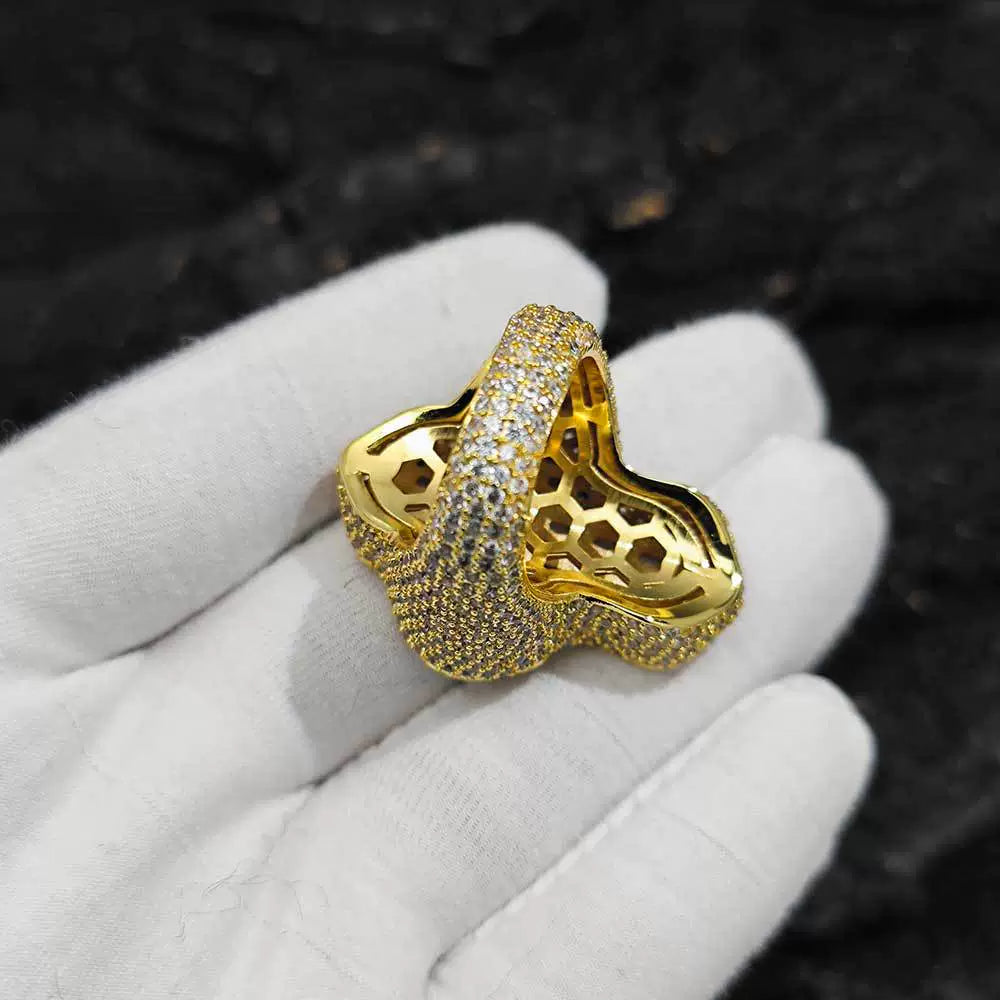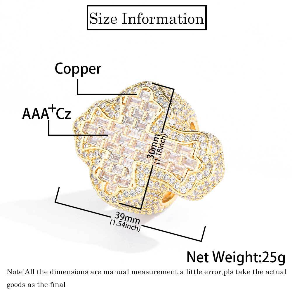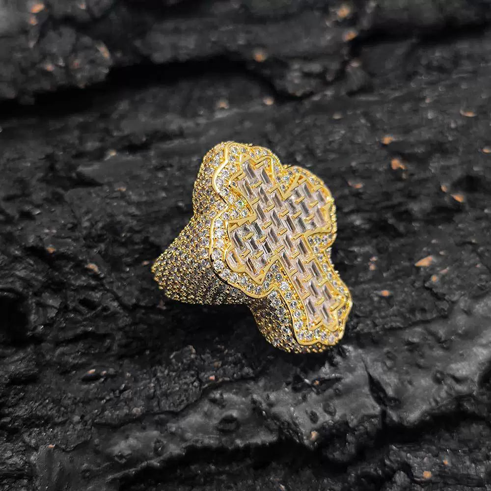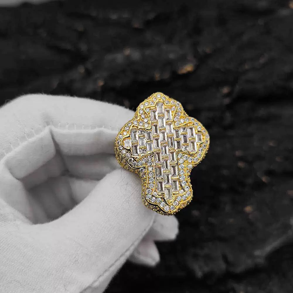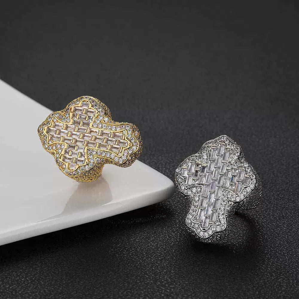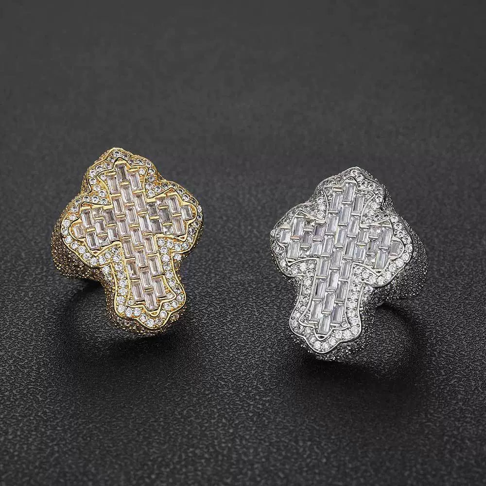 Wholesale Inlaid T-Baguette Cubic Zirconia Cross Hip Hop Band Ring