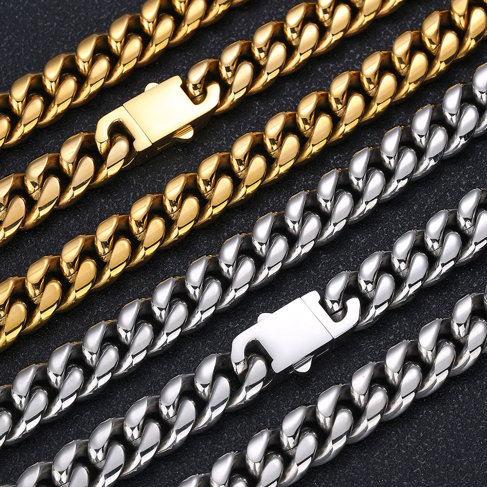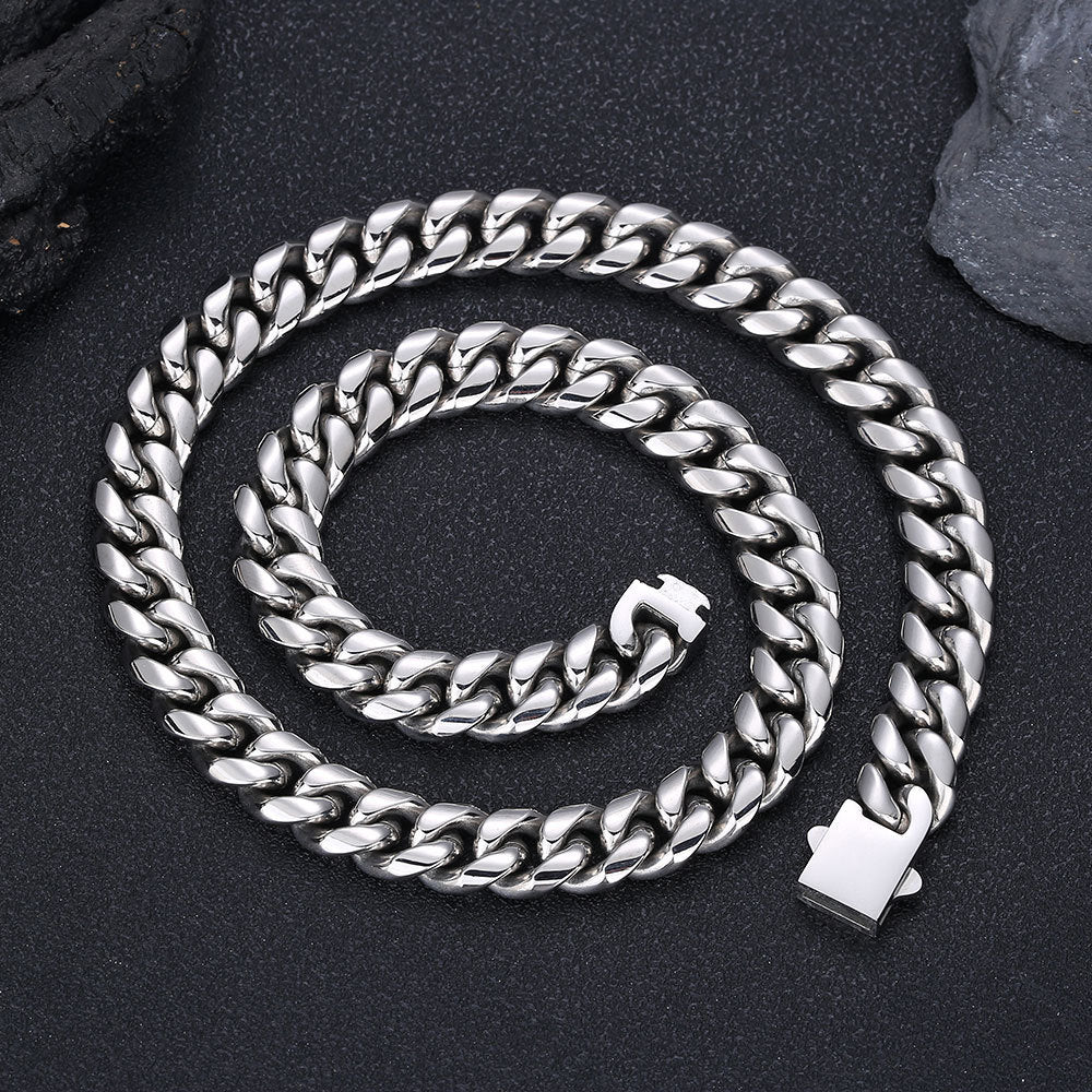Wholesale Jewelry Set HipHop 304 Stainless Steel Cuban Bracelet and Necklace, Chain 16in-30in