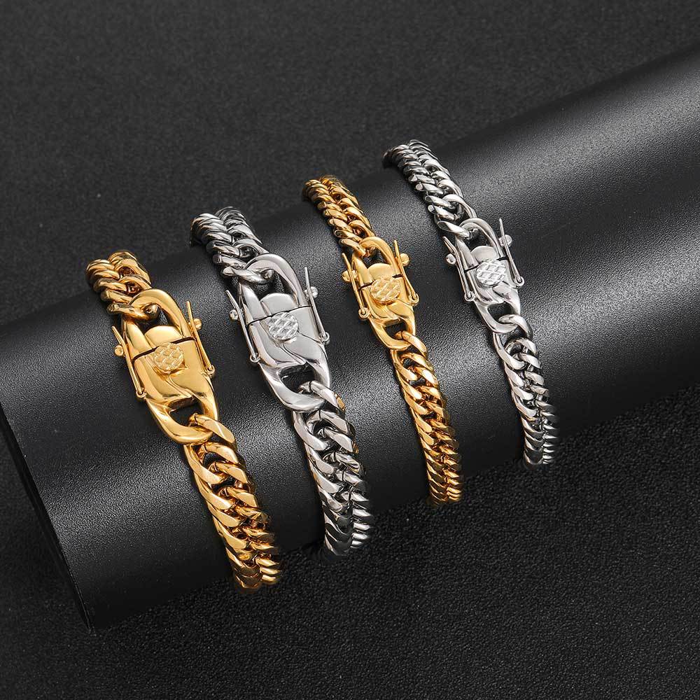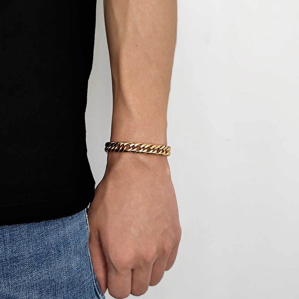 Made from premium stainless steel and finished with 18K real gold vacuum plating, this bracelet ensures long-lasting shine, superior color retention, and resistance to corrosion or fading. The double-weave Cuban links add depth and weight, giving it a solid, premium look perfect for hip hop fashion or everyday styling.