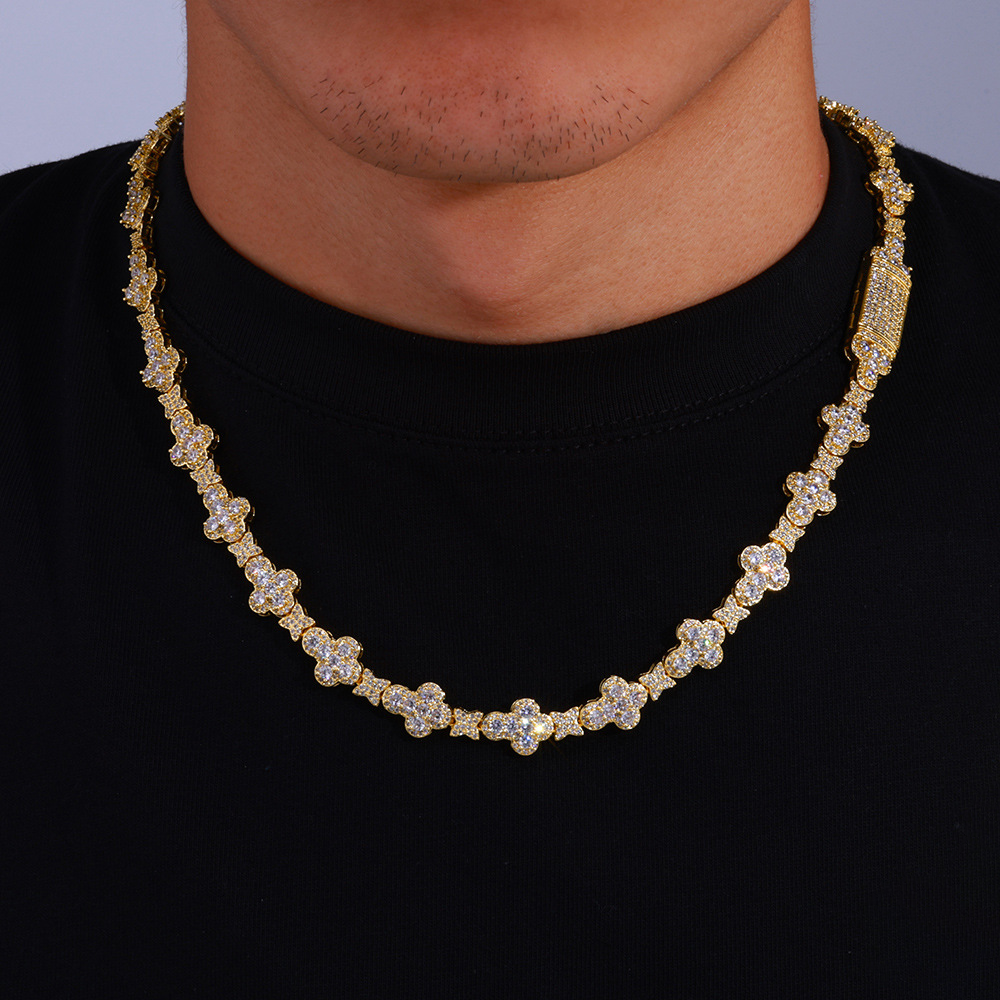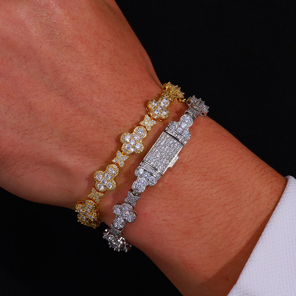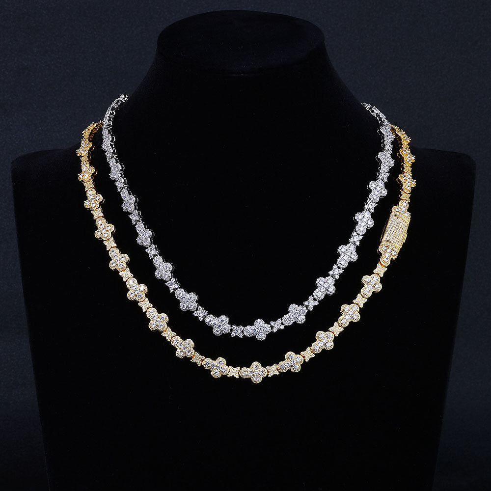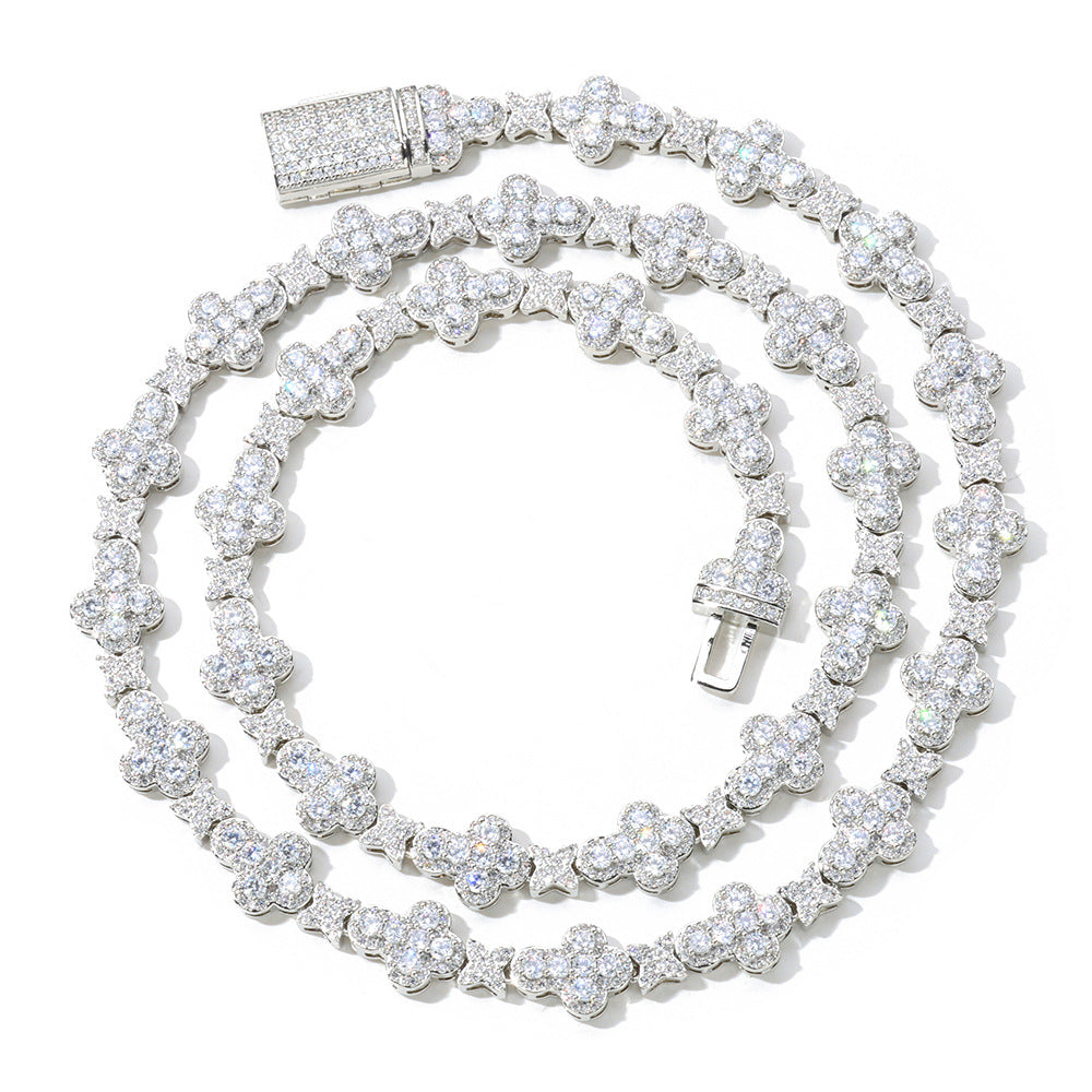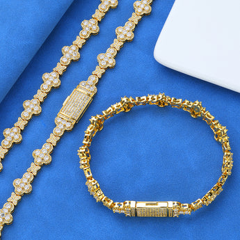 Wholesale Leaf Link Luxury Chain Cubic Zirconia Jewelry Set Hip Hop Bracelet and Necklace, Chain 7in-24in