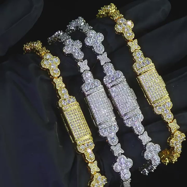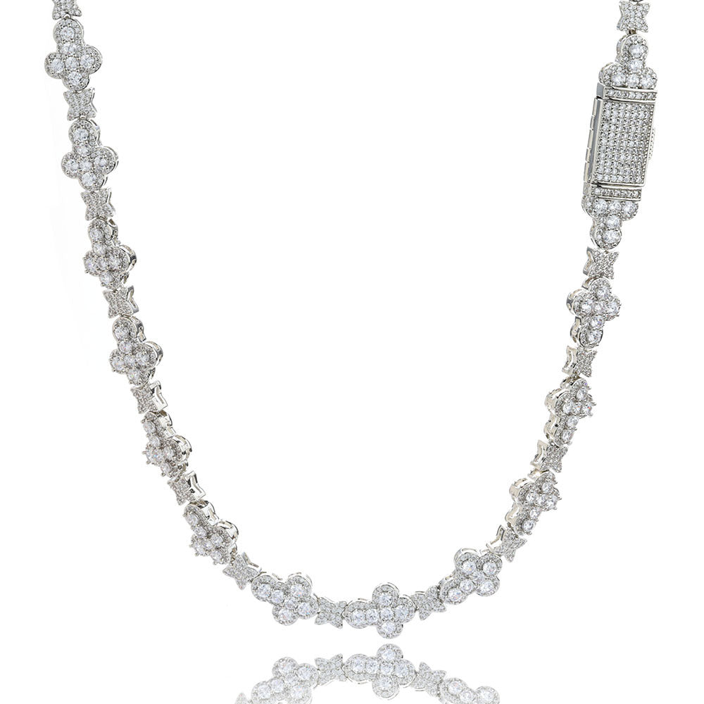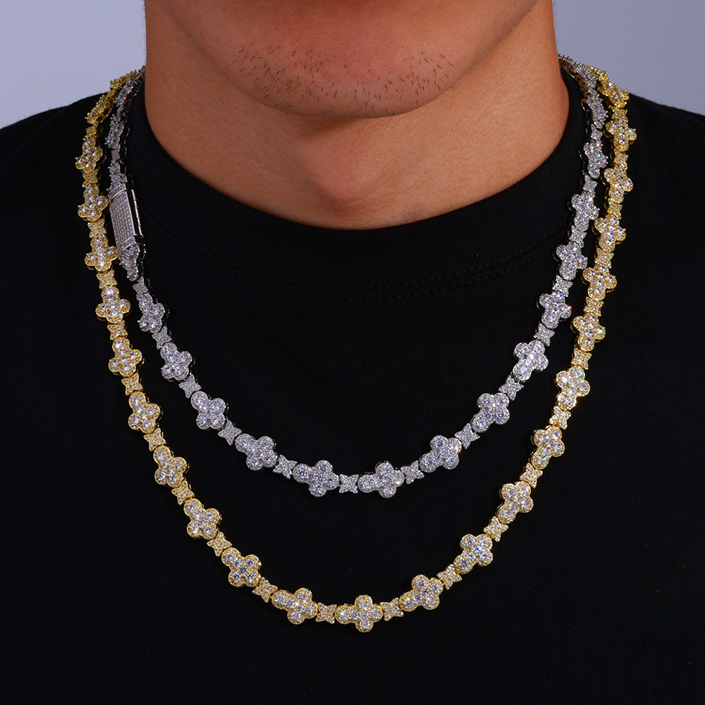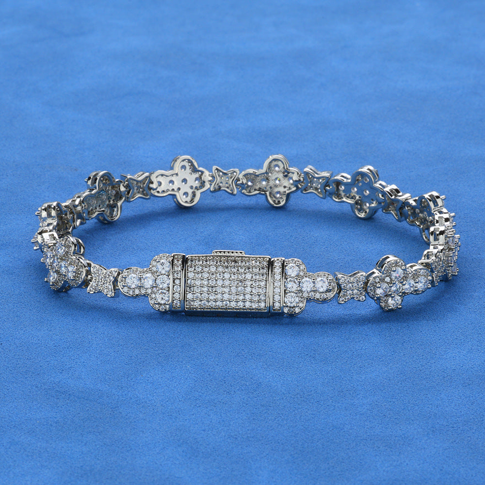 Wholesale Leaf Link Luxury Chain Cubic Zirconia Jewelry Set Hip Hop Bracelet and Necklace, Chain 7in-24in