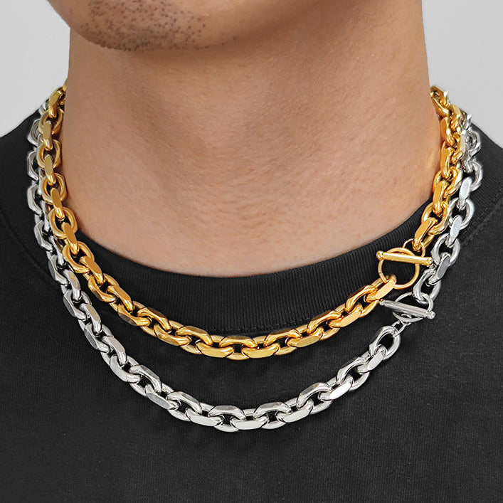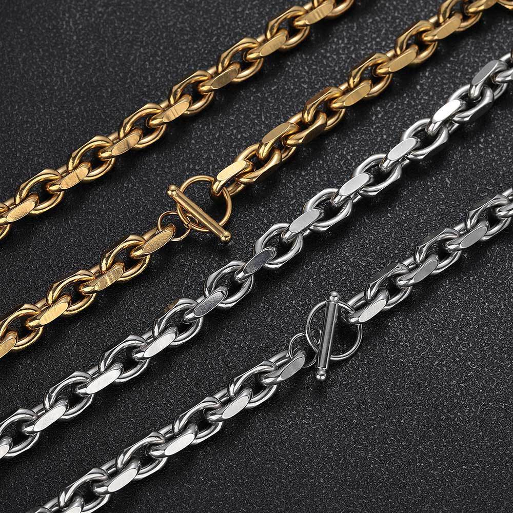 Wholesale OT Clasp Chunky Link Chain Hip Hop 304 Stainless Steel Necklaces 18K Gold Plated 16in-26in Waterproof∂