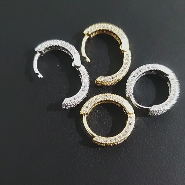 Wholesale Rectangle Huggie Cubic Zirconia HipHop Hoop Earrings
