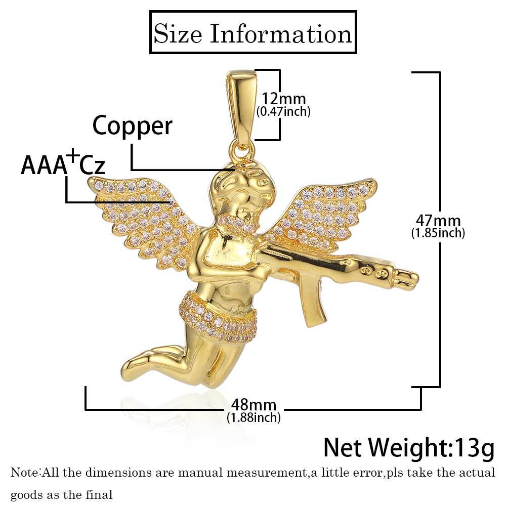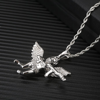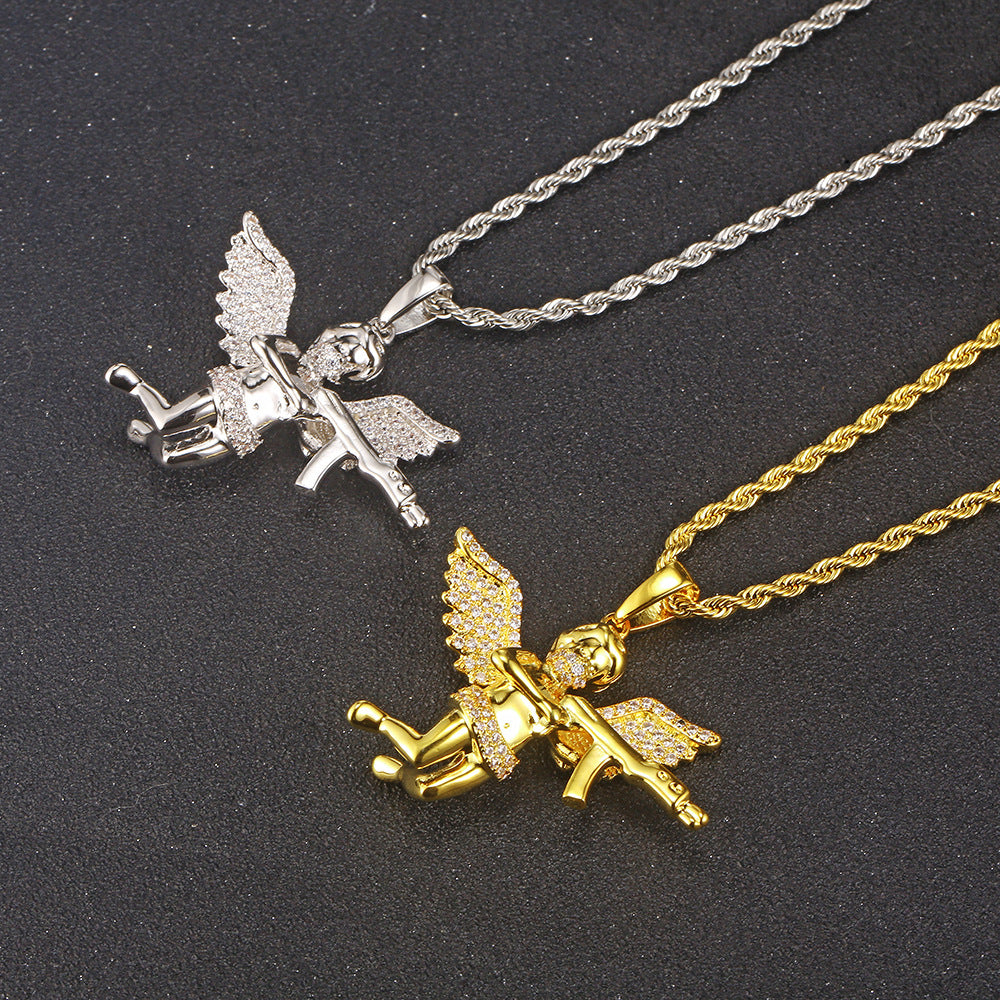 Wholesale Revenge Angel Cubic Zirconia Hip Hop Pendant Necklace,24in*3mm