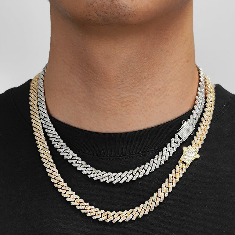 Wholesale Rhombus Cuban Link Cubic Zirconia Hip Hop Necklace, Chain 16in-24in