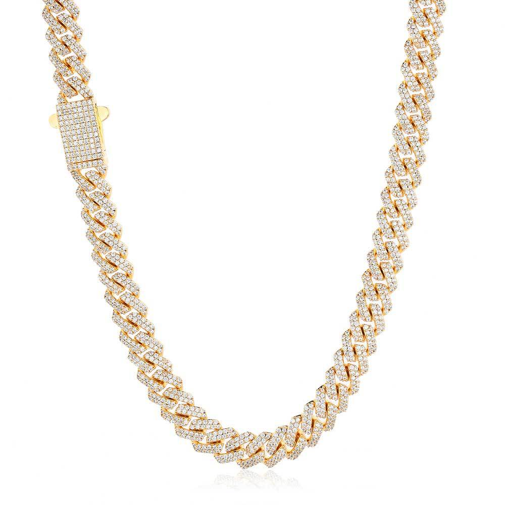 Wholesale Rhombus Cuban Link Cubic Zirconia Hip Hop Necklace, Chain 16in-24in Gold / 8mm / 16in(40.64cm)