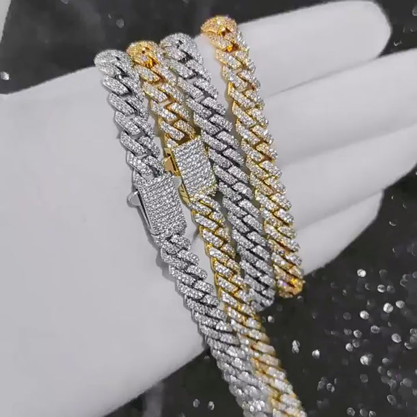 Wholesale Rhombus Cuban Link Cubic Zirconia Hip Hop Necklace, Chain 16in-24in Silver / 8mm / 18in(45.72cm)