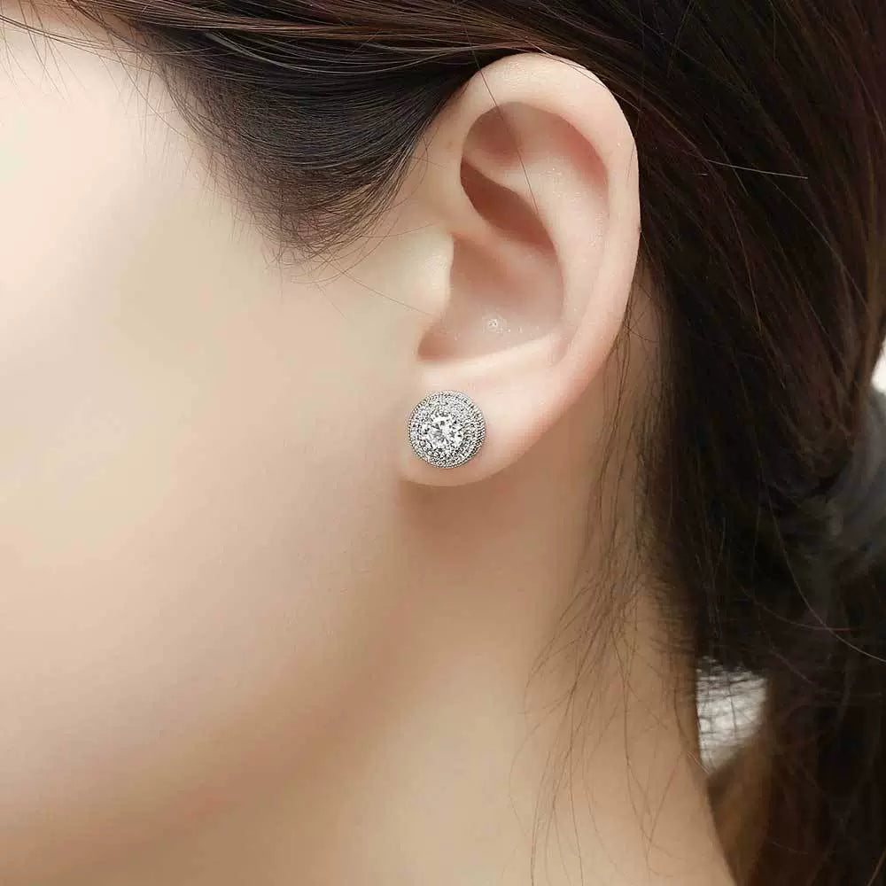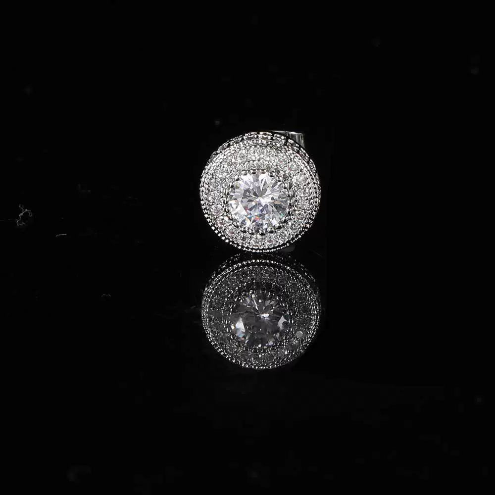 Wholesale Round Pave Cubic Zirconia Hip Hop Stud Earrings