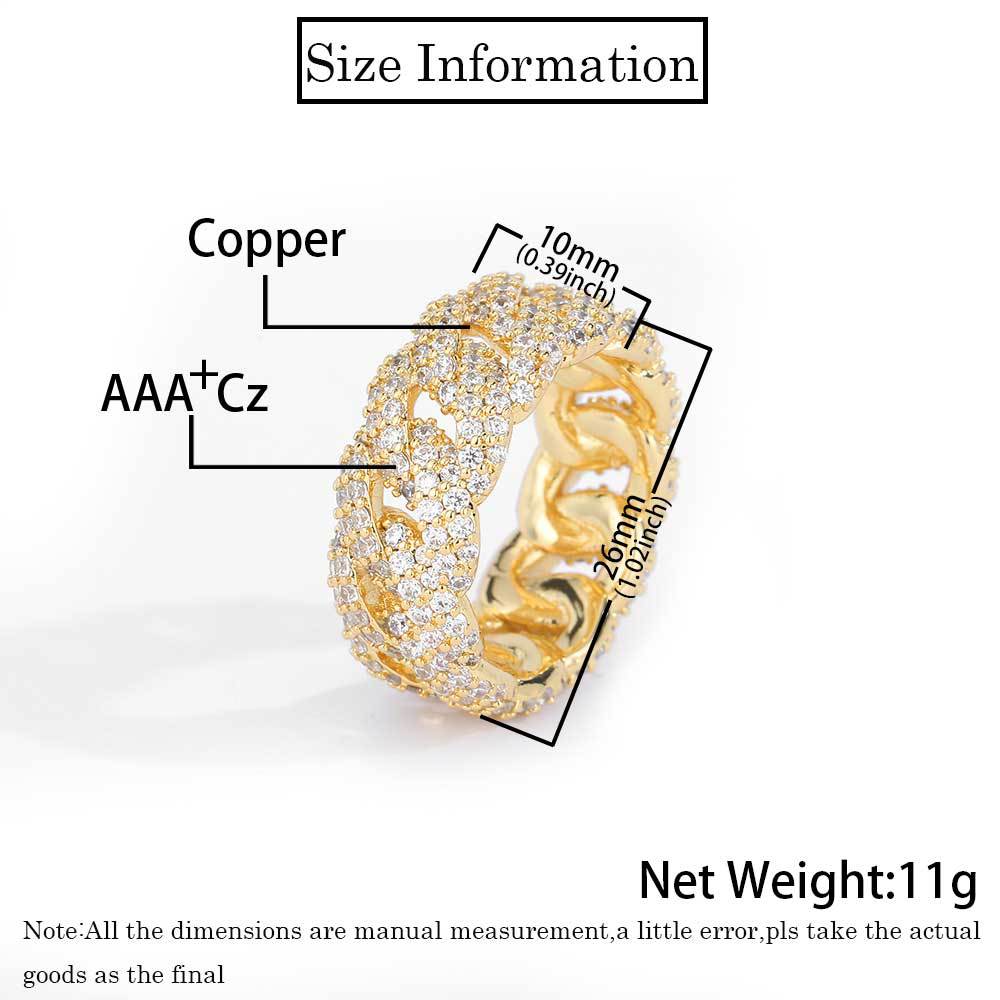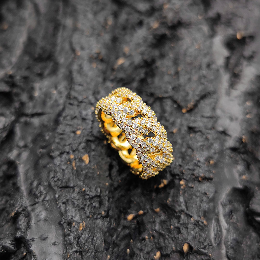 Wholesale Single Row Cubic Zirconia Hip Hop Cuban Link Band Ring