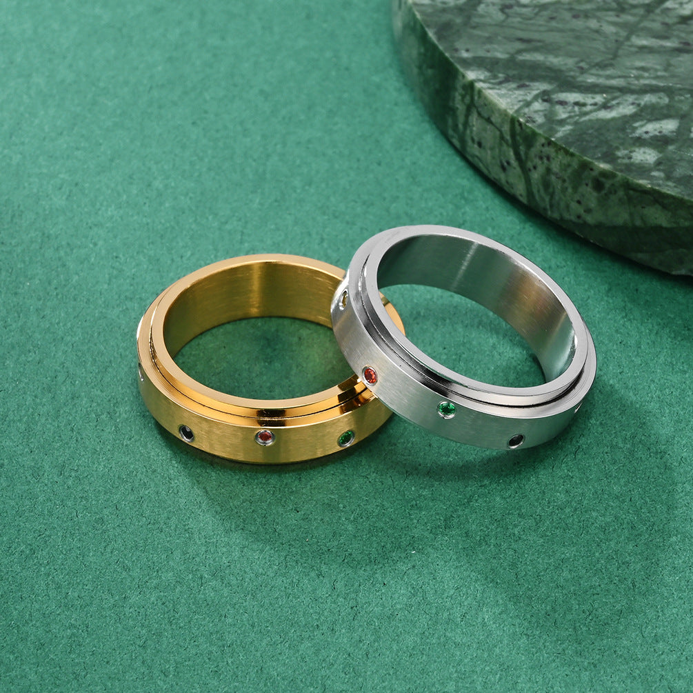 Wholesale Spinning Colorful Cubic Zirconia Hip Hop 304 Stainless Steel Ring – Waterproof