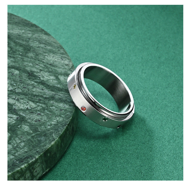 Perfect for wholesale buyers in the urban fashion and hip hop jewelry market, this rotating titanium steel ring combines innovation, playfulness, and premium craftsmanship, making it a unique and best-selling addition to any jewelry collection.