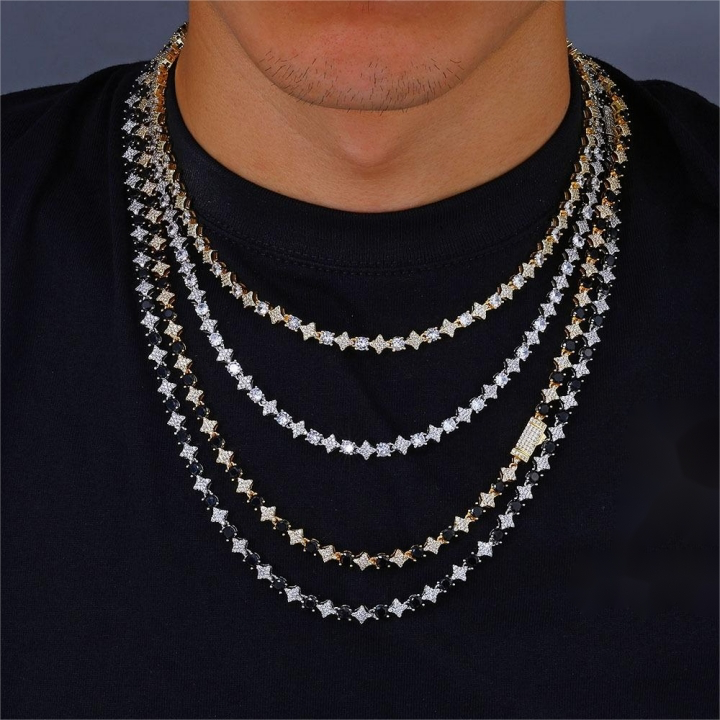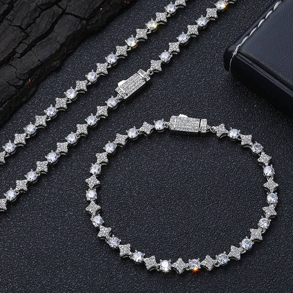 Wholesale Star Cubic Zirconia Jewelry Set Trendy Tennis Bracelet and Necklace, Chain 7in-24in