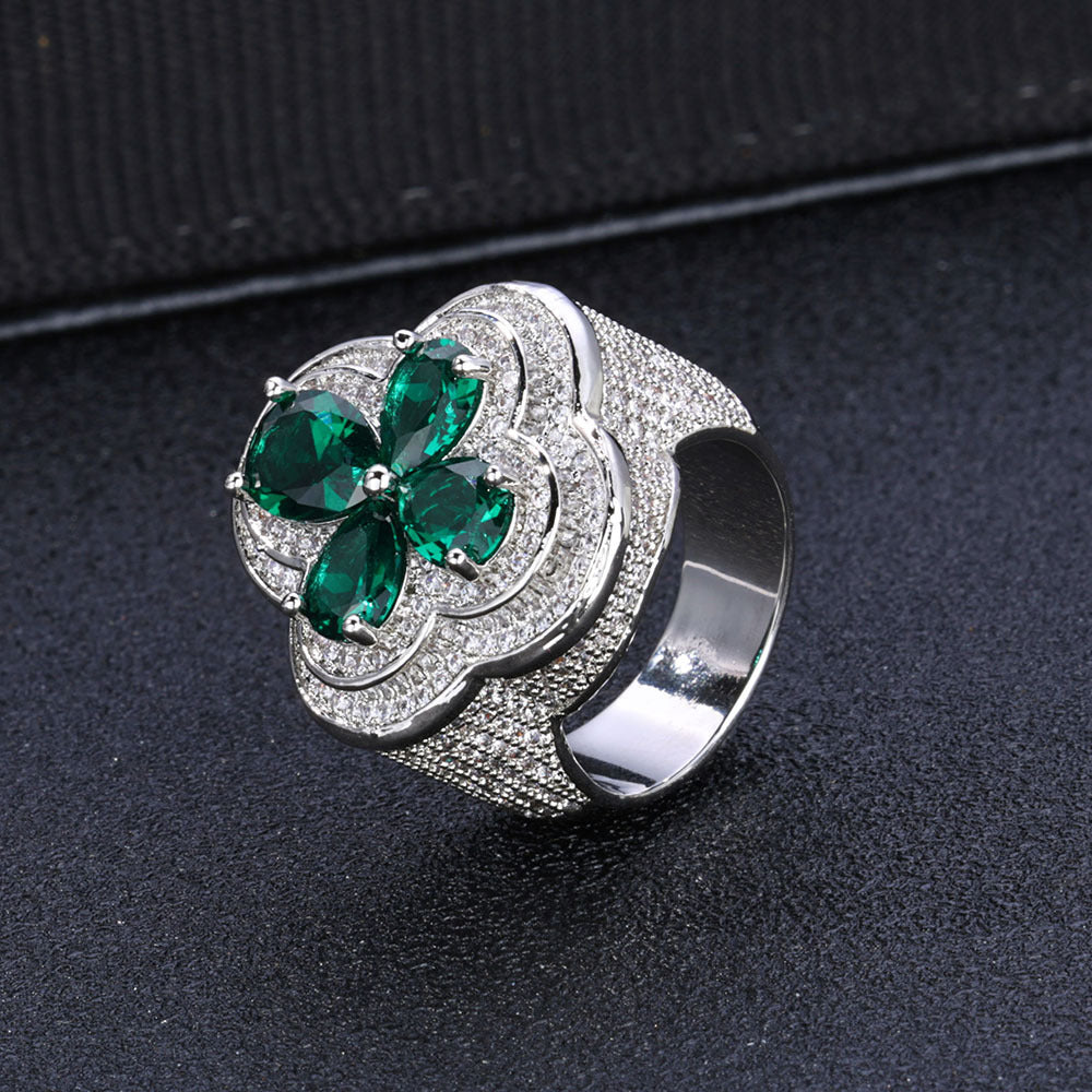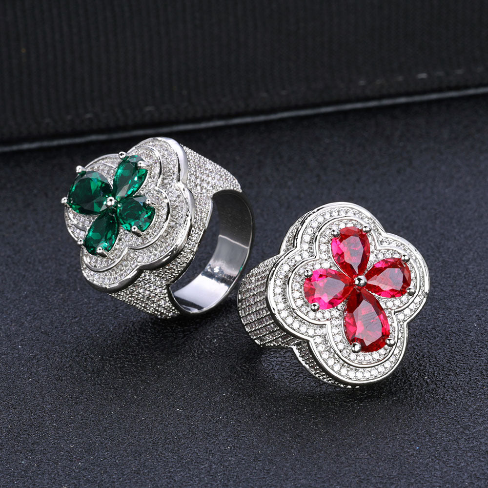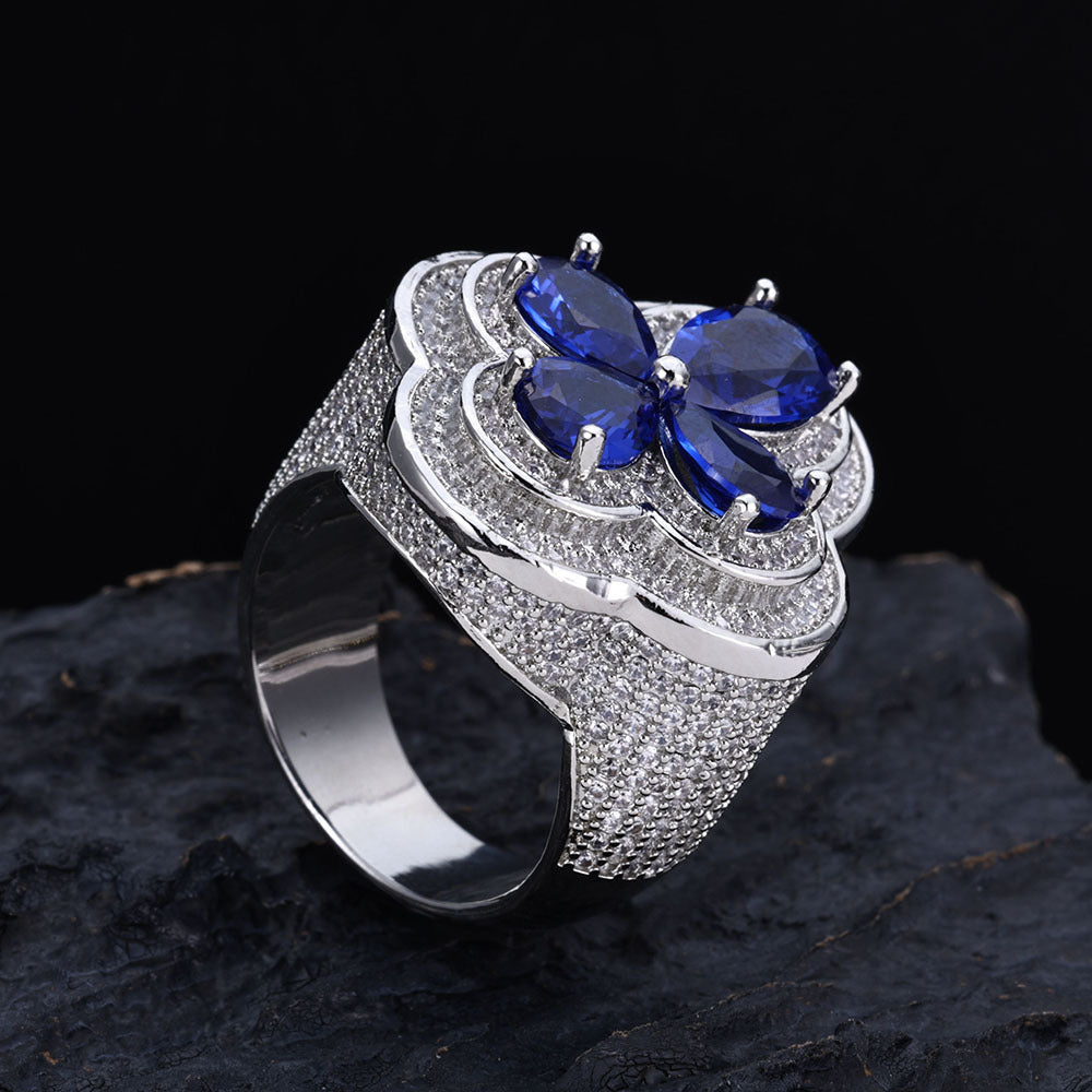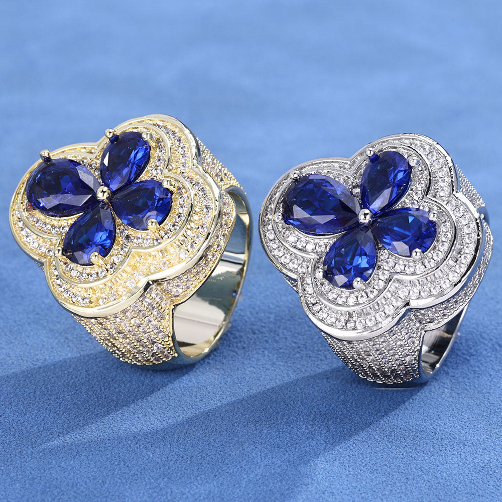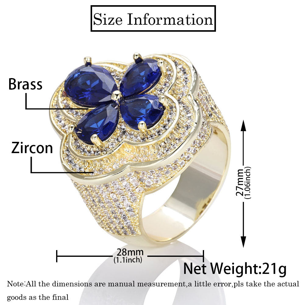Wholesale Trendy Flower Cubic Zirconia Hip Hop Solitaire Ring