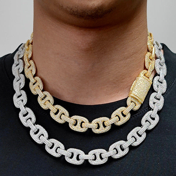 Wholesale 16mm Pig Nose Bubble Cuban Link Cubic Zirconia Hip Hop Necklace , Chain16in-24in