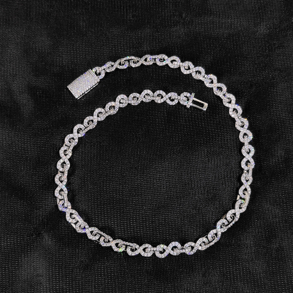 Wholesale 8mm Single Row Cubic Zirconia O-Link Hip Hop Necklace and Bracelet Set with Flip Clasp, Chain7in-24in