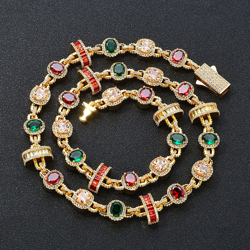 Perfect for jewelry retailers, distributors, and hip hop fashion brands looking to offer vibrant, high-shine iced-out accessories. The Colorful Cubic Zirconia Necklace adds a unique, energetic twist to the classic Cuban link style, making it a favorite among global streetwear and music enthusiasts.