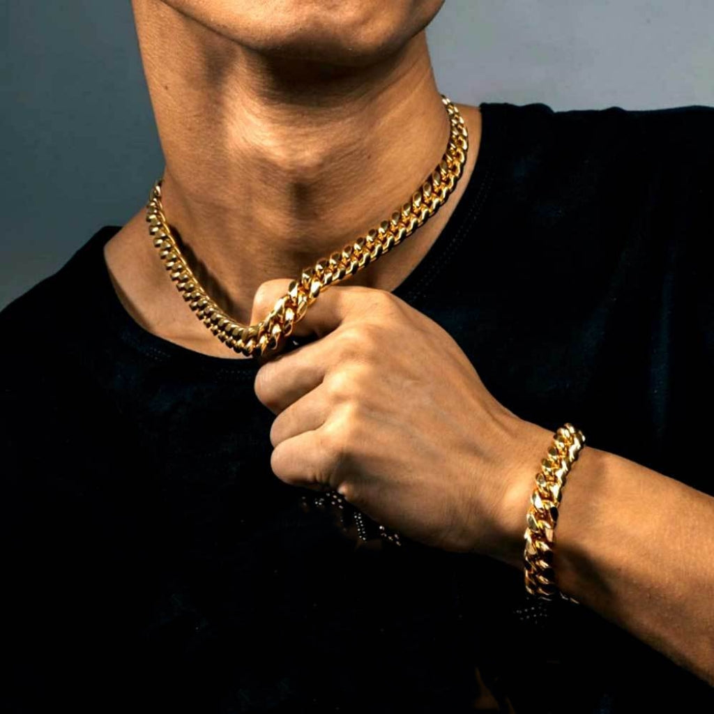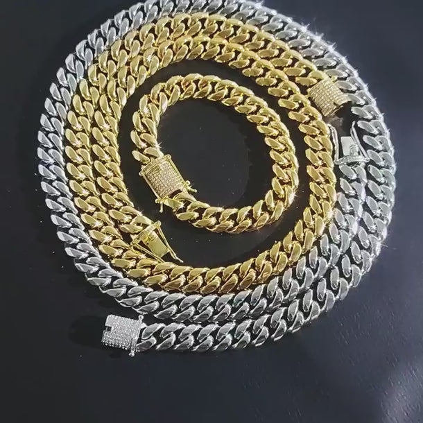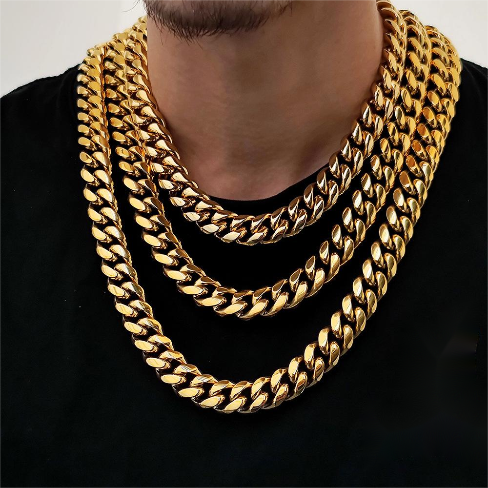 Wholesale Cuban Chain Cubic Zirconia Double-Sided Diamond Clasp Hip Hop 304 Stainless Steel Necklace - 18K Gold-Plated , Chain 16in-30in , Waterproof